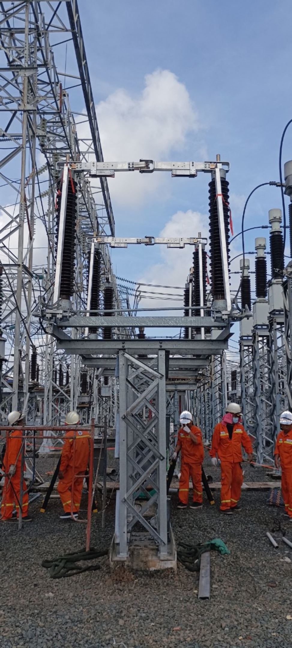 Vật tư dao cách ly 110kV thu hồi được thay tại trạm 220kV Long Bình.