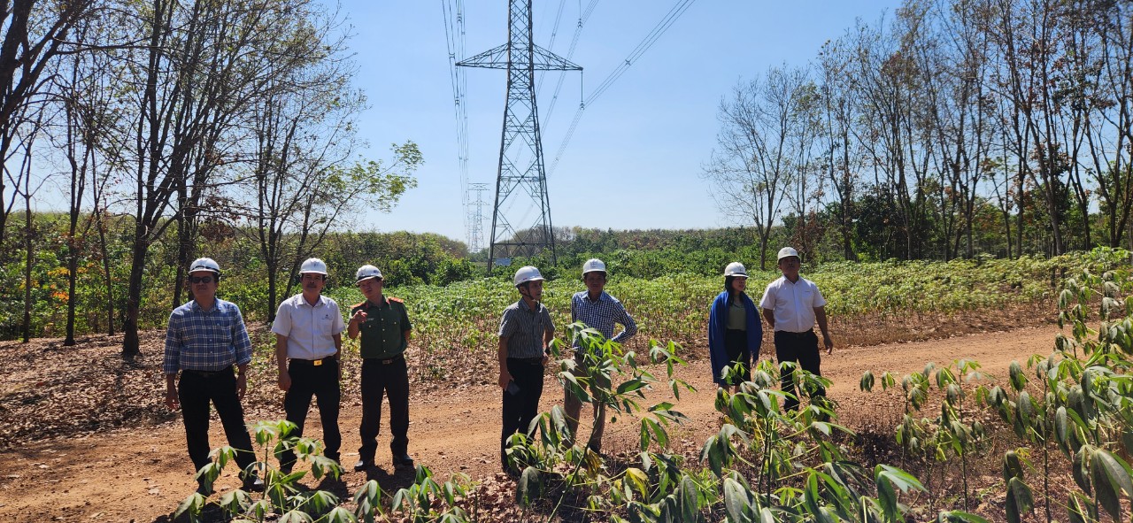 Phối hợp Công an tỉnh Bình Phước kiểm tra hành lang an toàn lưới điện.