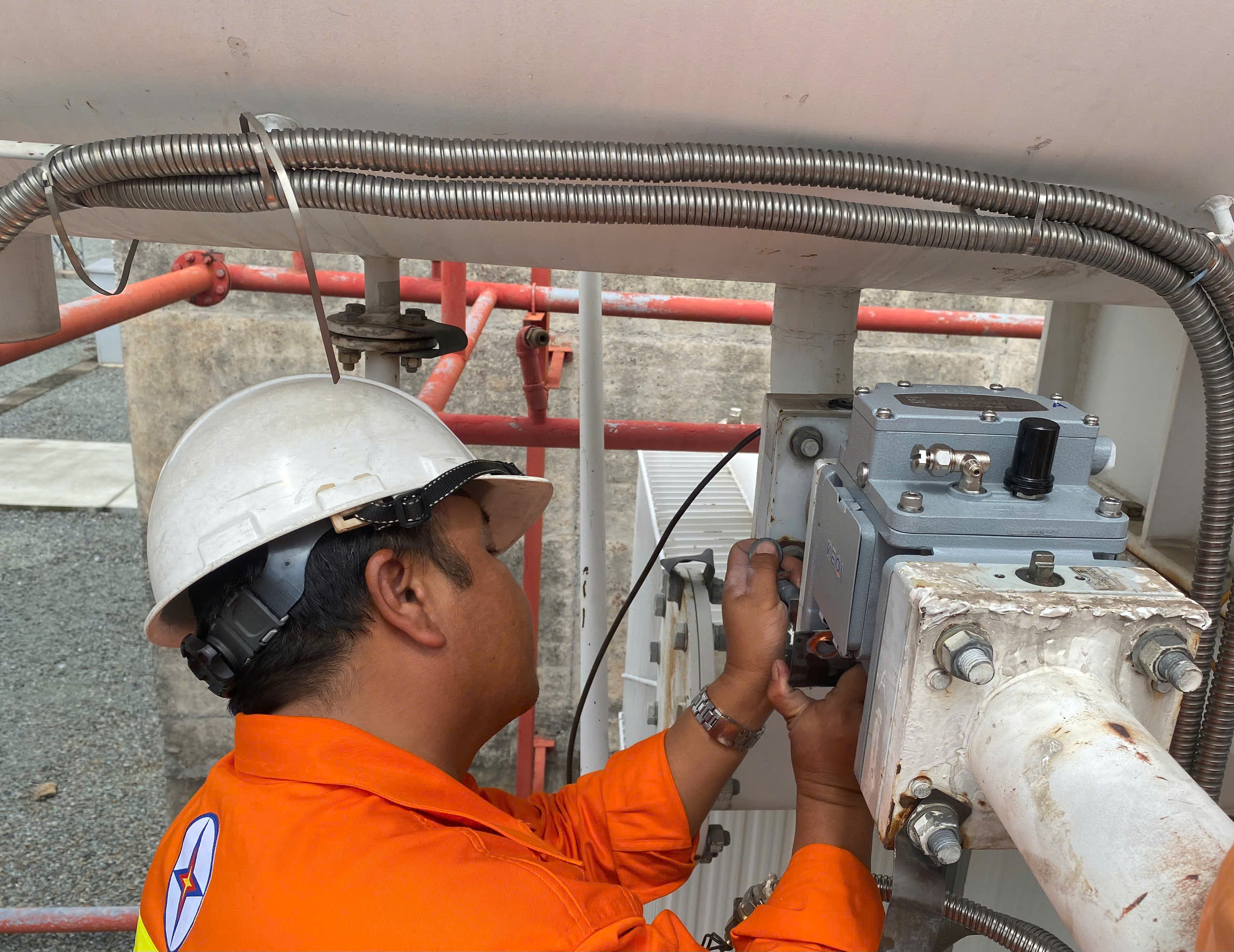 Nhân viên Trung tâm dịch vụ kỹ thuật 4 thay thế lắp đặt role hơi (96) cho MBA AT1 tại trạm 500kV Tân Định