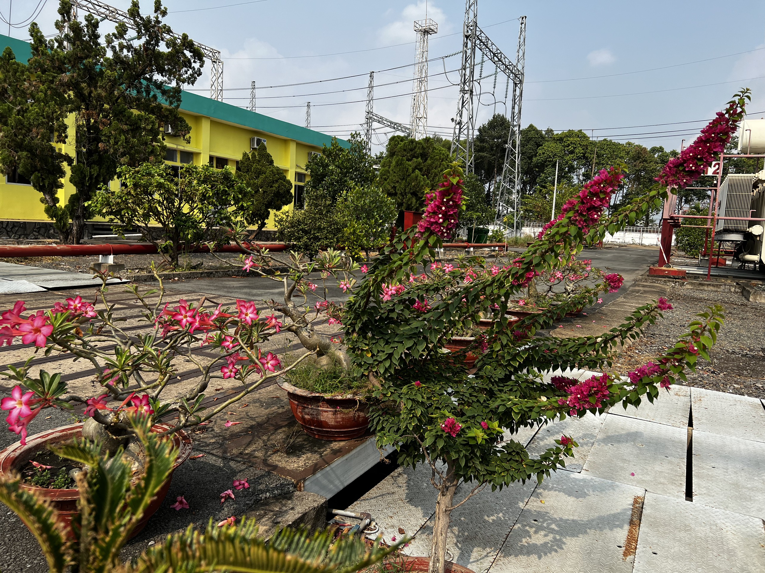 Một góc mảng xanh ngoài sân ngắt trạm 220kV Long Bình