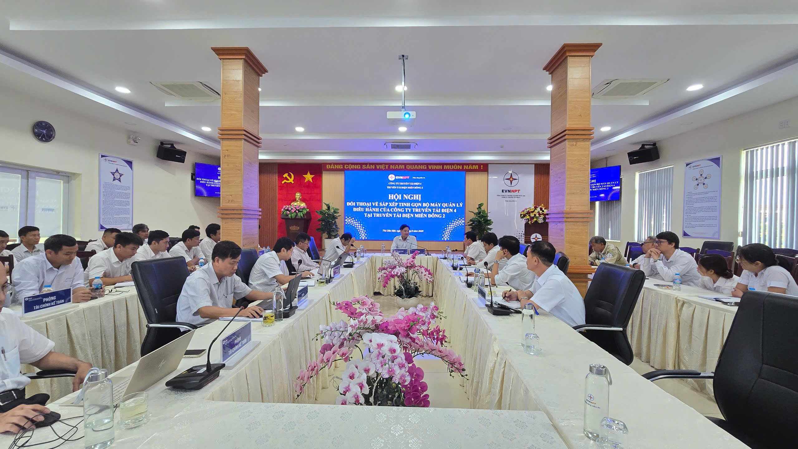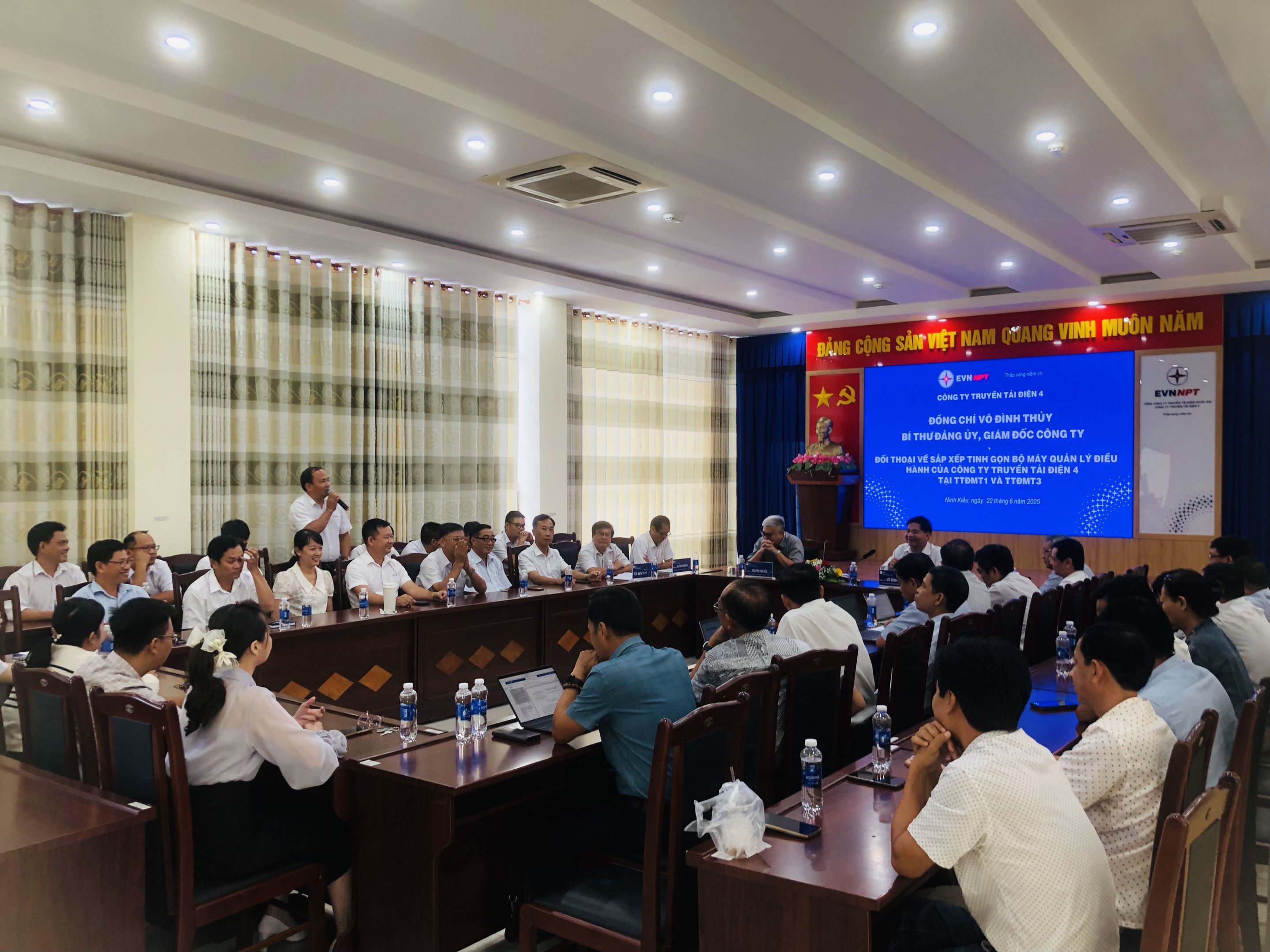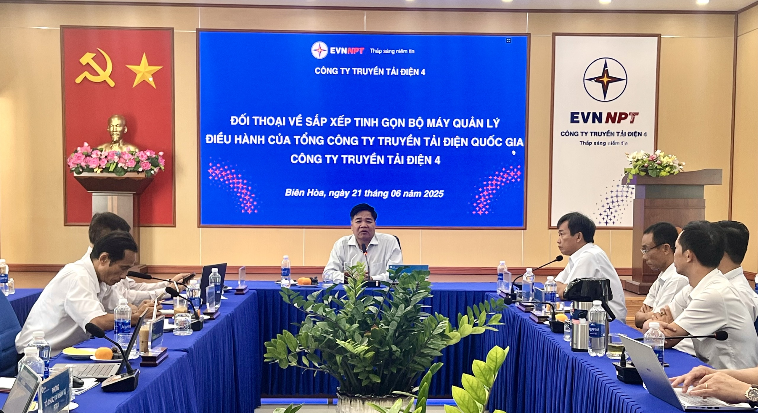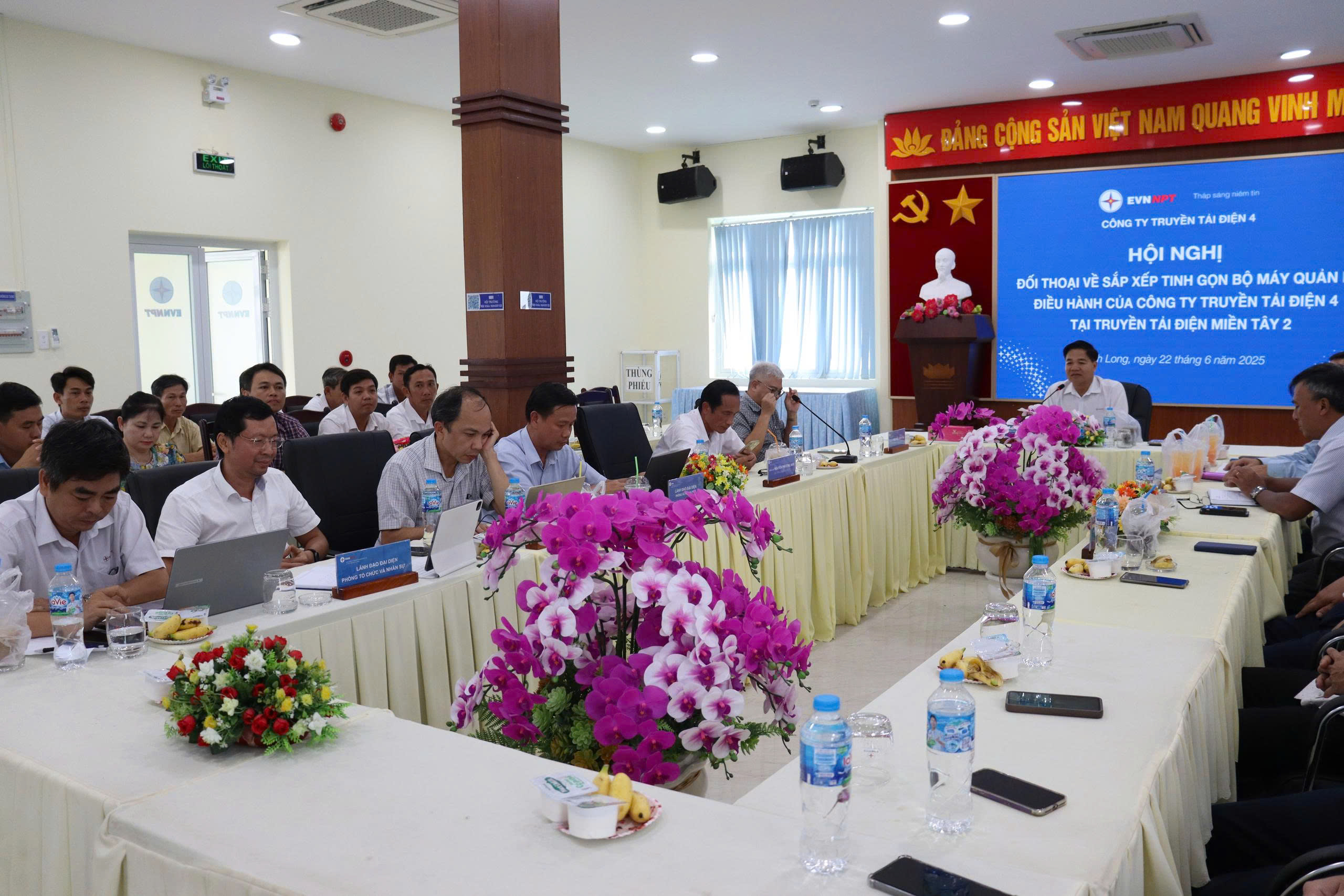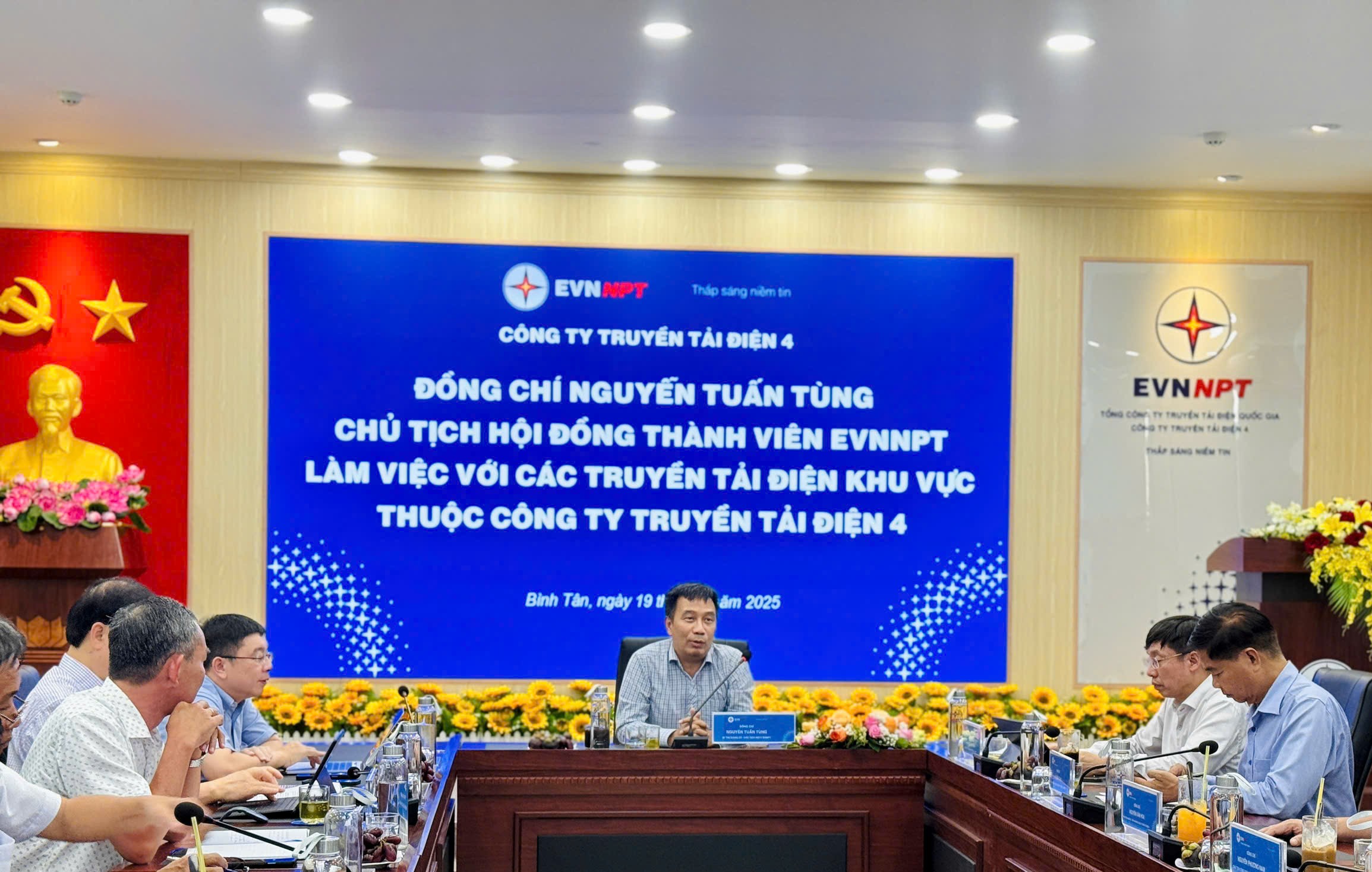 Ngày 19/06/2025, Chủ tịch Hội đồng thành viên Tổng công ty Truyền tải điện Quốc gia (EVNNPT) đã trực tiếp làm việc với PTC4 nhằm đánh giá tiến độ triển khai sắp xếp, kiện toàn tổ chức bộ máy quản lý, điều hành tại các đơn vị truyền tải điện trực thuộc PTC4, đồng thời lắng nghe tâm tư, nguyện vọng và ghi nhận ý kiến đóng góp của cán bộ công nhân viên bộ phận gián tiếp của Truyền tải điện Thành phố Hồ Chí Minh trong quá trình chuyển đổi tổ chức. Đây là nội dung trọng tâm nằm trong định hướng tái cơ cấu, nâng cao hiệu quả hoạt động của EVNNPT giai đoạn hiện nay. Khẳng định tầm quan trọng của việc tối ưu hóa tổ chức trong toàn hệ thống, nhằm nâng cao năng lực và hiệu quả hoạt động chung của ngành điện.