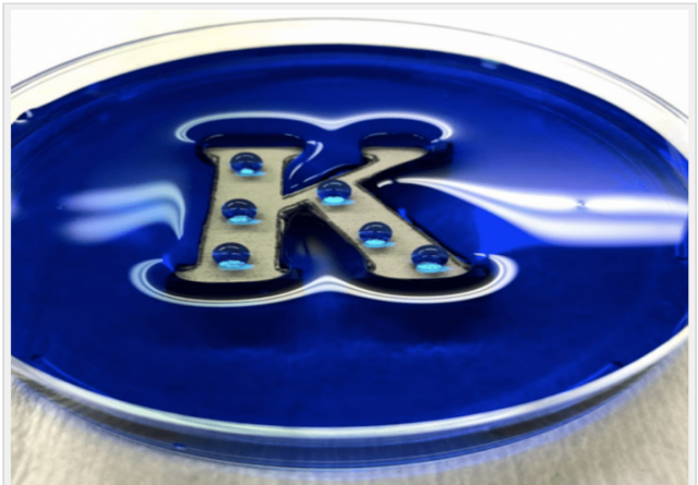Để chứng minh đặc tính siêu kỵ nước, một mẫu bề mặt cao su silicone có cấu trúc nano vi mô được nhúng vào đĩa Petri chứa đầy nước. Bề mặt silicone siêu kỵ nước vẫn khô ráo trong khi chiều cao của nước đạt đến ~ 3 mm (gọi là Hiệu ứng Moses). Những giọt nước màu xanh lam chứng tỏ bề mặt khô ráo.