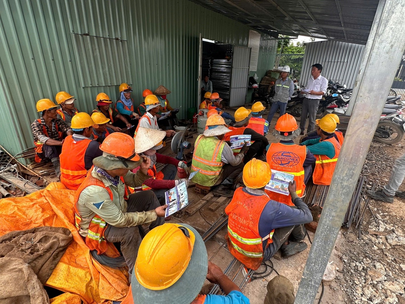 Tuyên truyền bảo vệ an toàn hành lang lưới điện cho công nhân thi công đường cao tốc Châu Đốc – Cần Thơ – Sóc Trăng.