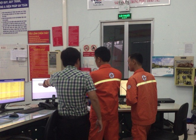 Ông Lâm Ngọc Duy Thanh – Tổ trưởng TTTLĐ Bình Chánh (bìa trái) đang tận tình hướng dẫn cách kiểm tra hệ thống máy tính cho nhân viên trong tổ với thái độ nhiệt tình và tôn trọng nhân viên.