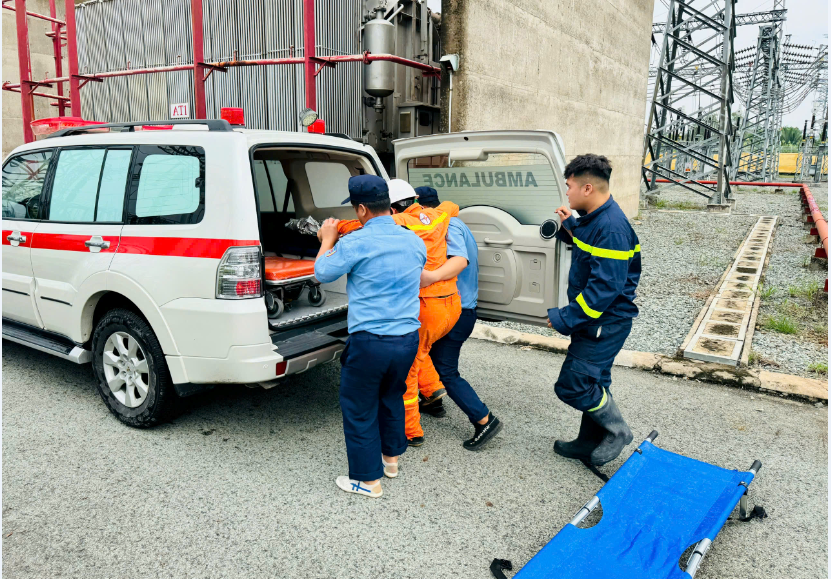 Tình huống giả định, vào lúc 10 giờ ngày 25/10/2024, nhân viên Tổ TTLĐ Bình Chánh phát hiện tiếng nổ lớn tại sân 220kV, còi báo động vang lên trong phòng điều hành và hệ thống điều khiển HMI hiển thị sự cố tại các ngăn 231, 131 và MBA AT1. Người phát hiện cháy đầu tiên lập tức hô to báo động cho toàn bộ CBCNV tham gia chữa cháy.