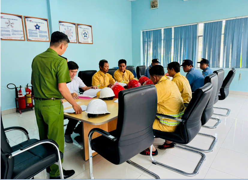 Triển khai kế hoạch và kịch bản trước khi thực tập phương án chữa cháy và cứu nạn, cứu hộ phối hợp với đội cảnh sát PCCC&CNCH công an huyện Bình Chánh năm 2024.