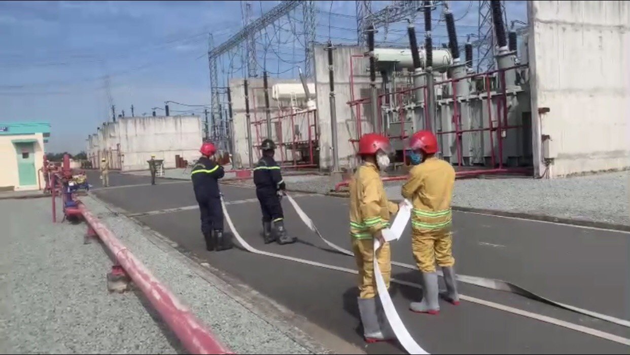 Vào lúc 10 giờ 00 phút ngày 15/12/2021, Trạm biến áp 500kV Tân Uyên đã phối hợp với Đội PCCC&CNCH Vĩnh Tân thực tập giả định tình huống cháy phức tạp trong phương án chữa cháy đã được Phòng CS PCCC&CNCH Công an tỉnh Bình Dương phê duyệt.