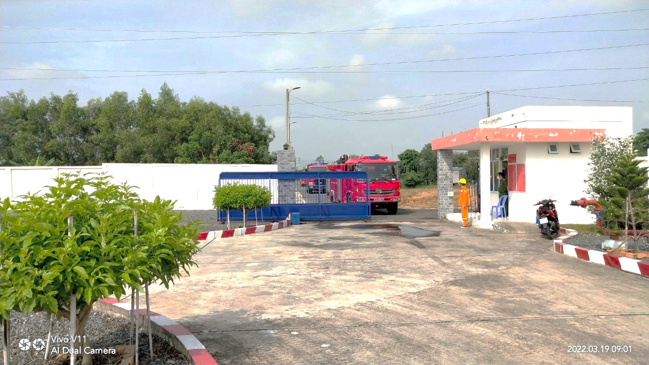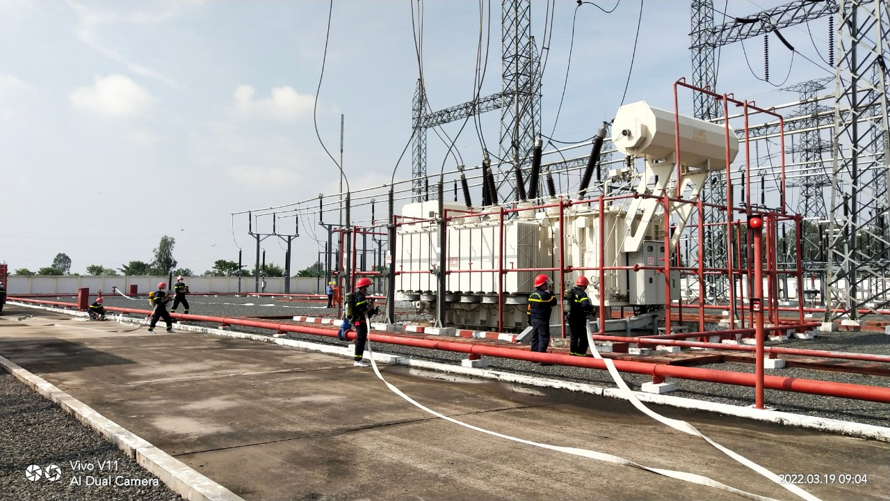 Tại hiện trường Trạm biến áp 220kV Long Xuyên, dưới sự chỉ huy của đ/c Trung tá Nguyễn Hồ Vũ - Đội phó đội Đội PCCC và CNCH TP Long Xuyên đã triển khai lực lượng nhanh chóng tại hiện trường đám cháy, phương tiện gồm: 03 xe chữa cháy cùng 12 cán bộ chiến sĩ đến điểm thực tập lúc 10 giờ 30 phút phối hợp CBCNV tổ TTLĐ Long Xuyên triển khai đội hình đúng theo phương án chữa cháy đã được phê duyệt.