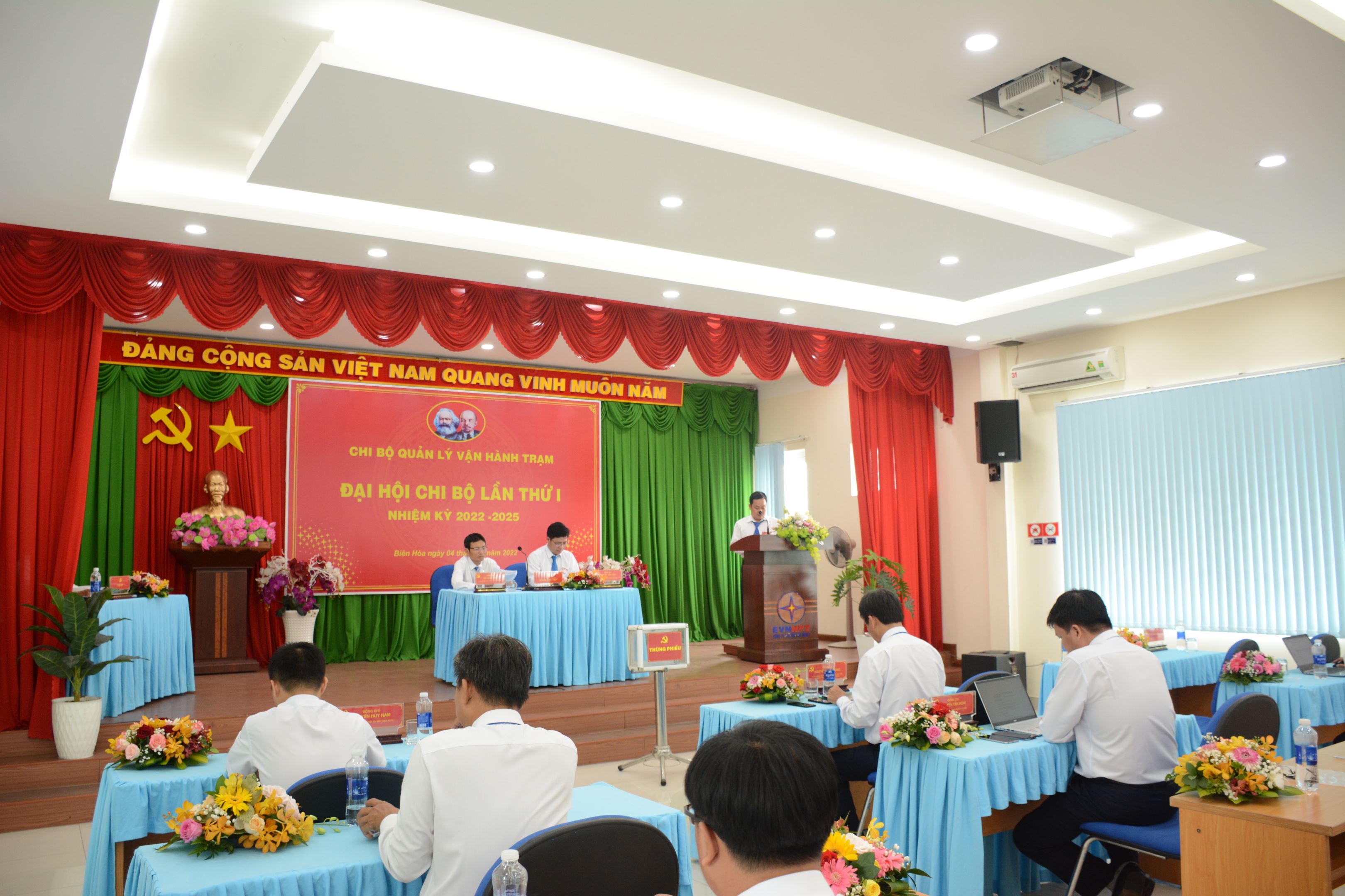 Sáng ngày 04/10/2022, Chi bộ Quản lý vận hành (QLVH) trạm trực thuộc Đảng bộ bộ phận TTĐ Miền Đông 1 tiến hành Đại hội lần thứ I, nhiệm kỳ 2020 - 2022 nhằm tổng kết, đánh giá khách quan những việc đã làm được, những mặt chưa làm được, nguyên nhân và bài học kinh nghiệm trong nhiệm kỳ qua. Đồng thời, đề ra phương hướng, mục tiêu, nhiệm vụ và các giải pháp trong nhiệm kỳ tới. Đại hội vinh dự được đón tiếp đồng chí Nguyễn Minh Dũng - UVBCH Đảng bộ Công ty Truyền tải điện 4, Bí thư Đảng ủy bộ phận, Giám đốc Truyền tải điện Miền Đông 1 đến tham dự và chỉ đạo Đại hội, các đồng chí UVBCH Đảng bộ bộ phận, Chủ tịch Công đoàn, Bí thư Đoàn Thanh niên TTĐ MĐ1, Bí thư Chi bộ QLVH đường dây, Bí thư Chi bộ Cơ quan truyền tải điện và 11 đảng viên thuộc Chi bộ QLVH trạm.