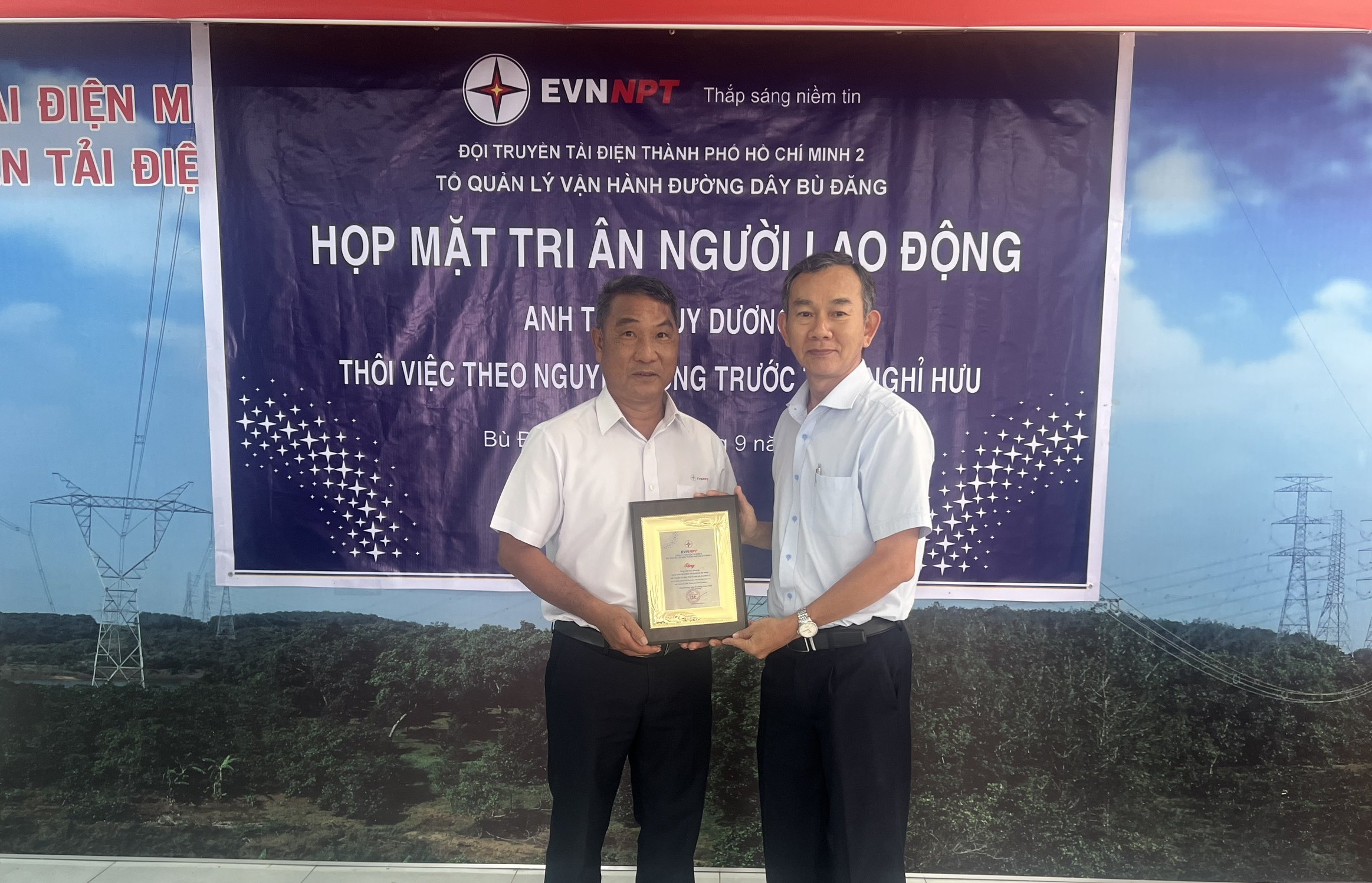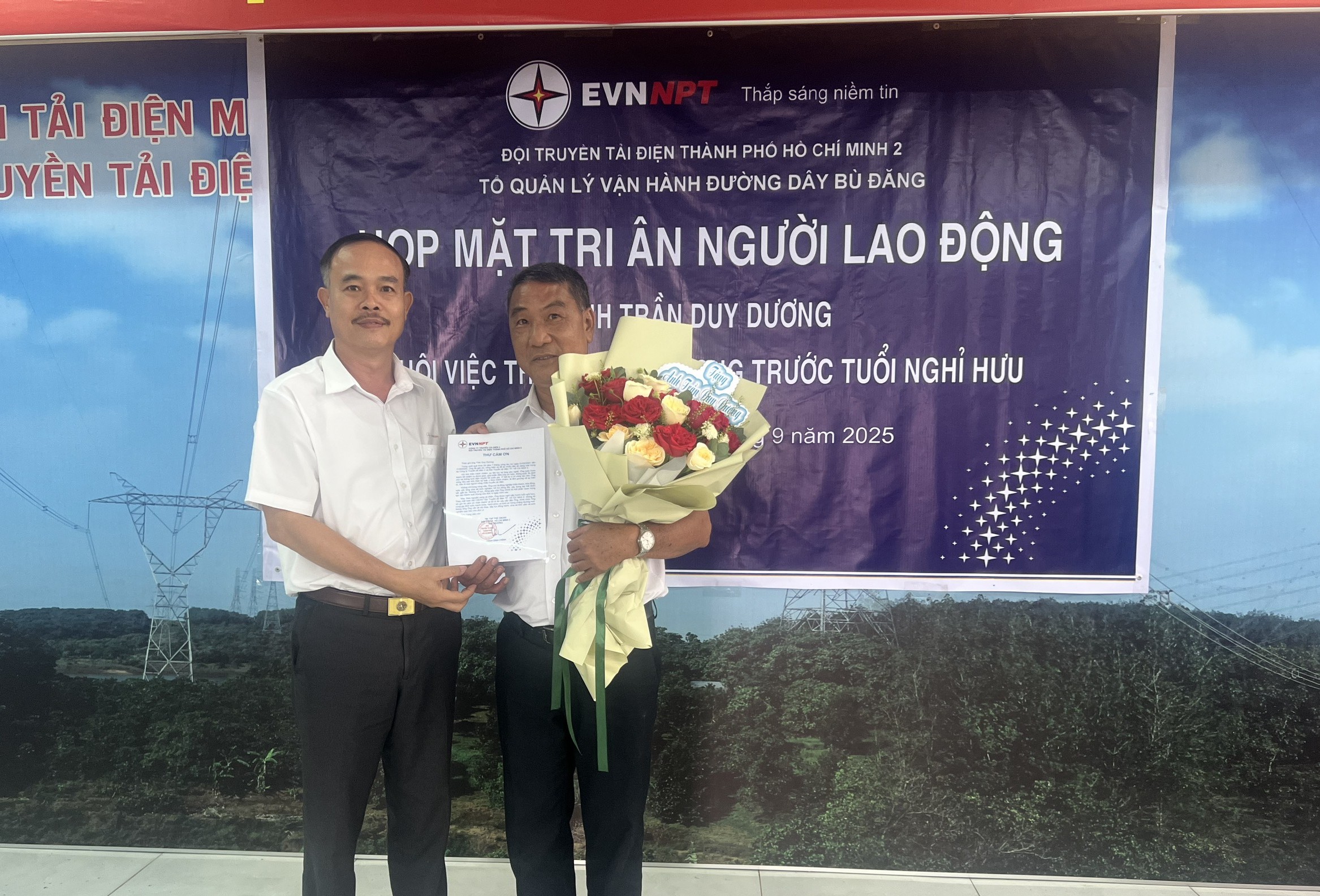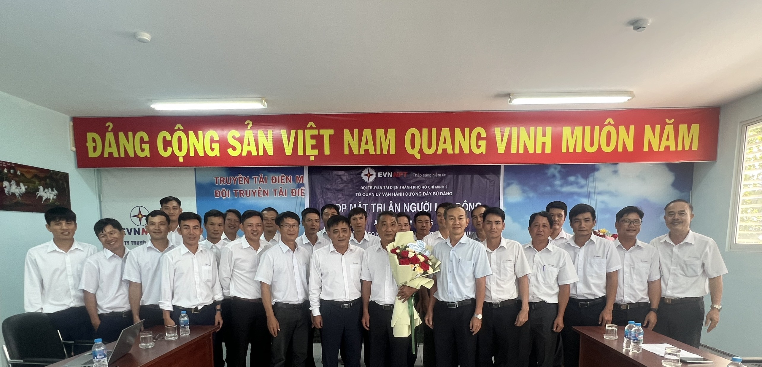Buổi gặp mặt vinh dự có đồng chí Trịnh Đình Chính – Bí thư Chi bộ, Đội trưởng Đội Truyền tải điện Thành phố Hồ Chí Minh 2 (Đội TTĐTPHCM2), cùng các đồng chí trong ban lãnh đạo Đội. Về phía đơn vị, có đồng chí Đinh Tiến Hùng – Ủy viên Ban chấp hành (UVBCH) Chi bộ, Tổ trưởng Tổ QLVHĐD Bù Đăng và toàn thể cán bộ công nhân viên trong Tổ.
