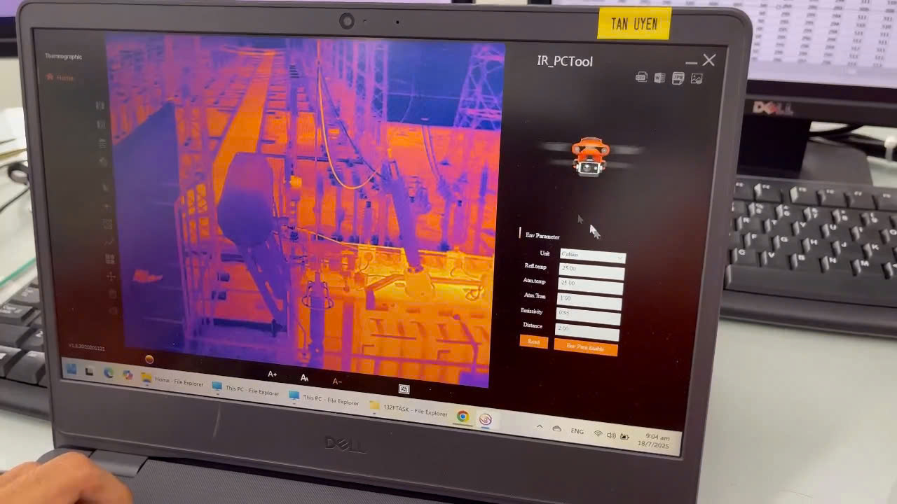 Vào mùa nắng nóng, nhu cầu sử dụng điện tăng cao khiến hệ thống truyền tải và các trạm biến áp phải đối mặt với nhiều nguy cơ mất ổn định. Đặc biệt, các phần tử mang dòng tải lớn dễ phát nhiệt cục bộ, tiềm ẩn nguy cơ sự cố nếu không được giám sát kịp thời. Trước đây, công tác kiểm tra thiết bị chủ yếu thực hiện thủ công bằng máy ảnh nhiệt cầm tay, nhân viên phải đi bộ toàn bộ sân trạm 500kV, 220kV, 110kV để chụp ảnh và quan sát. Cách làm này tốn nhiều thời gian, công sức và tiềm ẩn rủi ro an toàn cho điều hành viên.