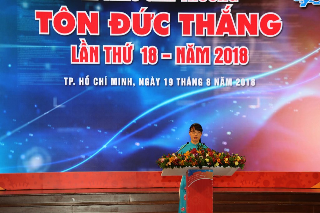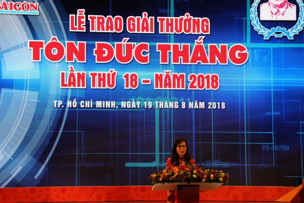 Phát biểu tại lễ trao giải, Chủ tịch LĐLĐ TPHCM Trần Thị Diệu Thúy cho biết, 18 năm qua, có 191 kỹ sư, công nhân, người lao động tiêu biểu của Thàn phố vinh dự nhận Giải thưởng Tôn Đức Thắng. Giải thưởng năm nay là 11 kỹ sư, công nhân trực tiếp sản xuất, có thời gian dài gắn bó với nghề, có nhiều phẩm chất đáng ngưỡng mộ, xứng đáng được tôn vinh và nhân rộng điển hình trong công nhân viên chức lao động; có nhiều sáng kiến, nghiên cứu khoa học thiết thực, được áp dụng vào quá trình lao động sản xuất kinh doanh; đồng thời đã truyền lửa, truyền nghề cho đội ngũ kế cận khơi nguồn sáng tạo. Đó là những kỹ sư, công nhân đã thổi luồng sinh khí mới, góp phần tích cực tạo nên không khí lao động hăng say cho tập thể người lao động tại các ngành đã được ban giám đốc doanh nghiệp, Ban chấp hành công đoàn cơ sở và công nhân lao động tin tưởng, yêu mến. Không chỉ chăm chỉ nghiên cứu, sáng tạo, sản xuất ra những sản phẩm mới, các công nhân ưu tú còn luôn tích cực chăm lo bồi dưỡng đào tạo đội ngũ công nhân mới trở thành người thợ giỏi cho doanh nghiệp, góp phần đưa phong trào thi đua “Lao động giỏi, Lao động sáng tạo” lan tỏa trong từng tổ, từng đội, từng phân xưởng sản xuất.