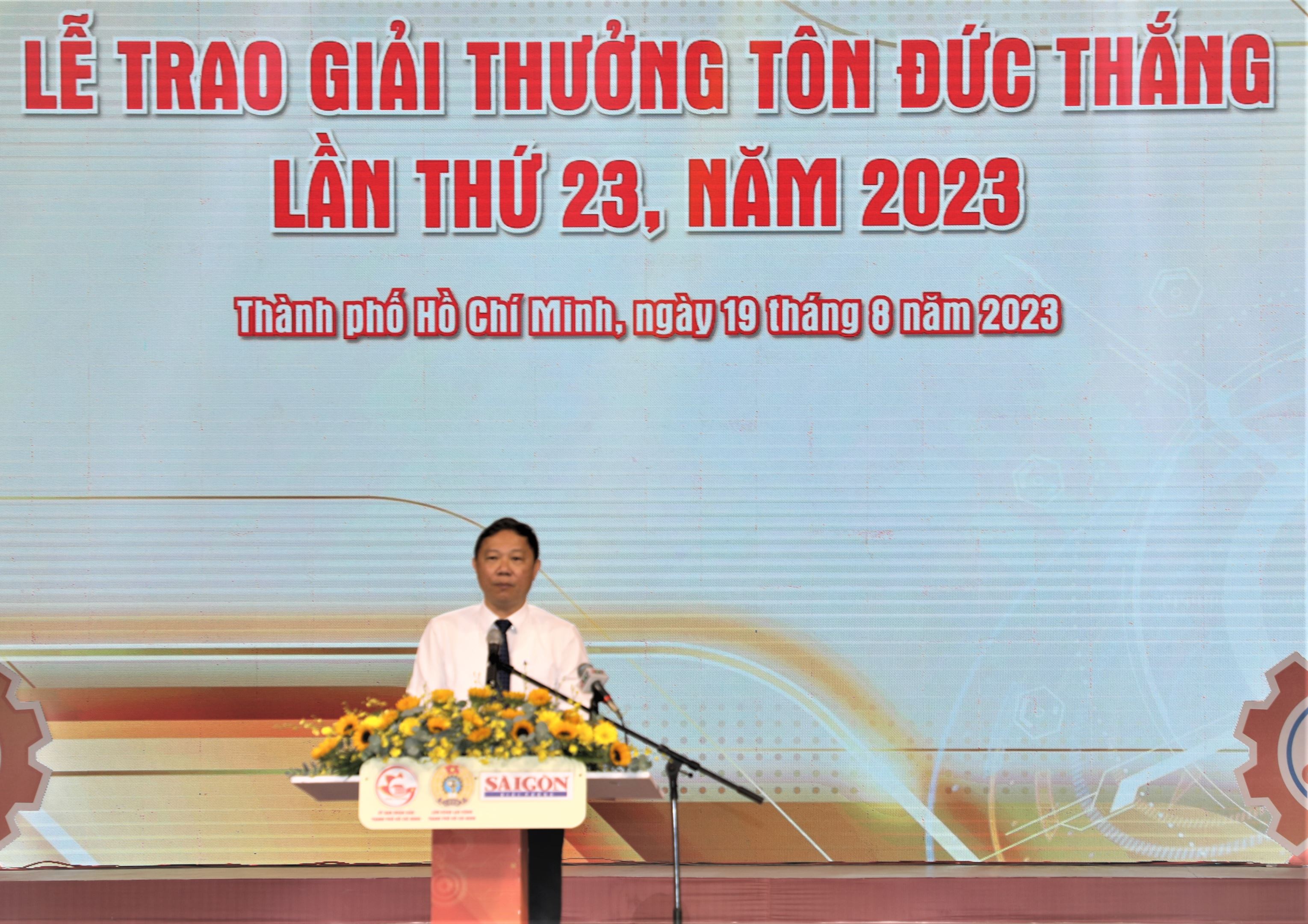Tại buổi lễ, ông Dương Anh Đức, Phó Chủ tịch UBND TP HCM cũng trân trọng ghi nhận và biểu dương những nỗ lực, cống hiến, những thành tích to lớn của đội ngũ công nhân, kỹ sư thành phố; cùng những hoạt động sáng tạo, thiết thực của tổ chức công đoàn thành phố trong thời gian qua đóng góp tích cực cho quá trình hồi phục kinh tế TPHCM sau đại dịch. Theo ông Dương Anh Đức, các gương tiêu biểu được trao giải thưởng Tôn Đức Thắng lần thứ 23 tuy khác nhau về hoàn cảnh xuất thân, về những công việc cụ thể thầm lặng hàng ngày, về những nỗ lực và những khó khăn đã phải vượt qua; nhưng các gương có một điểm chung thể hiện phẩm chất tốt đẹp của người công nhân. Đó là niềm say mê lao động, sáng tạo và sẵn lòng cống hiến, đề cao tinh thần phục vụ, dấn thân và một quyết tâm vượt khó vươn lên. "Chính cuộc sống, công việc và sự cống hiến của các bạn là niềm cảm hứng to lớn cho những công nhân, những người thợ trẻ tương lai đang ngày đêm miệt mài trong nhà máy, trên công trường và trên giảng đường"- ông Dương Anh Đức khẳng định./.
