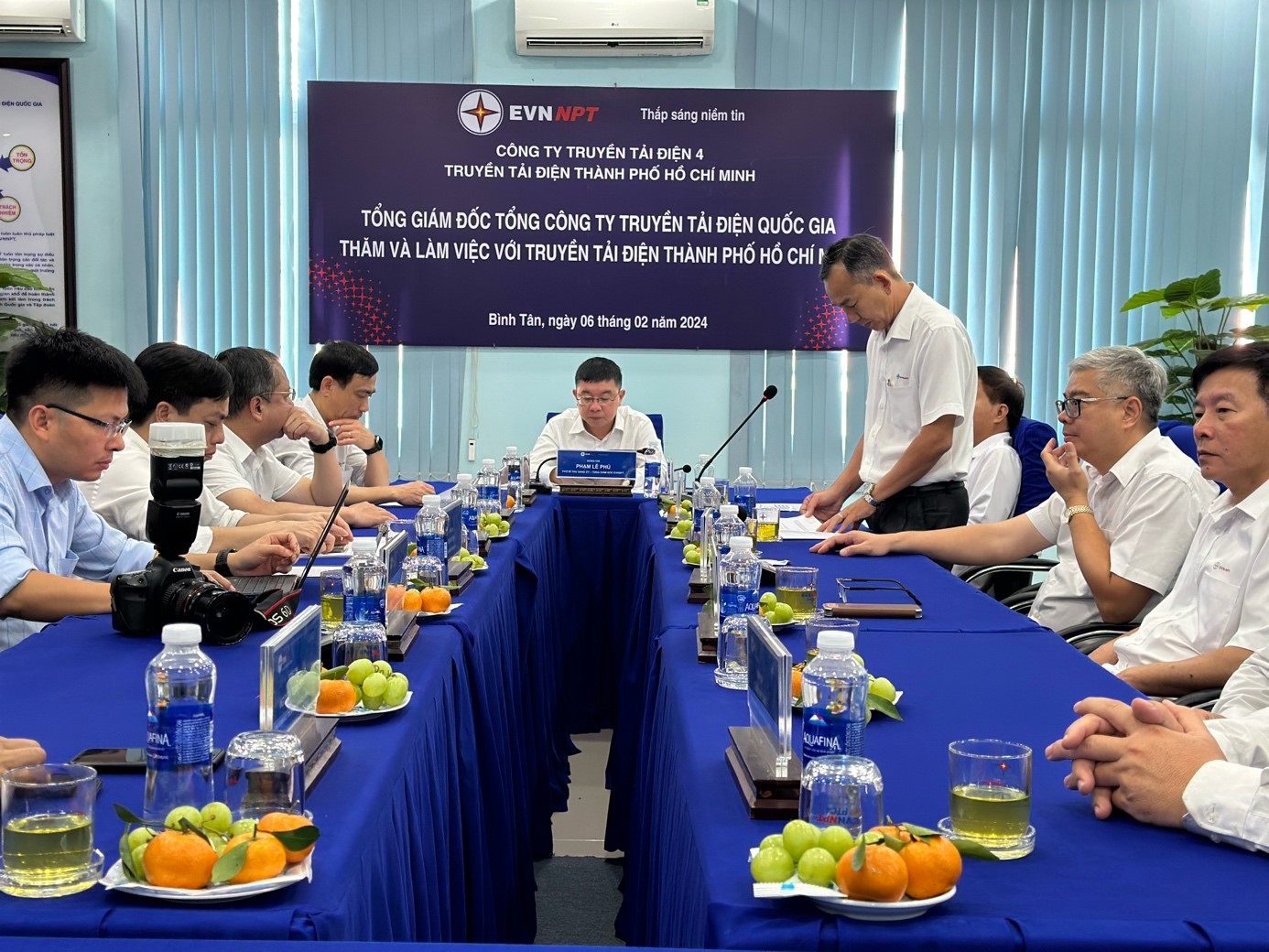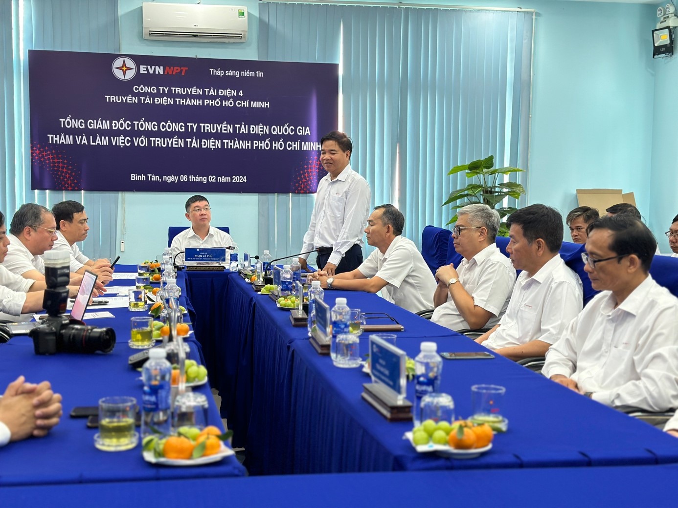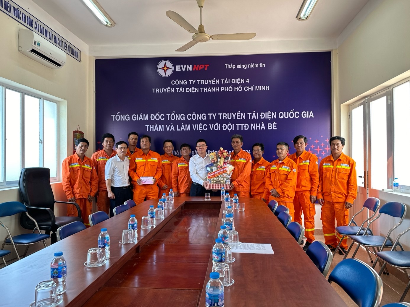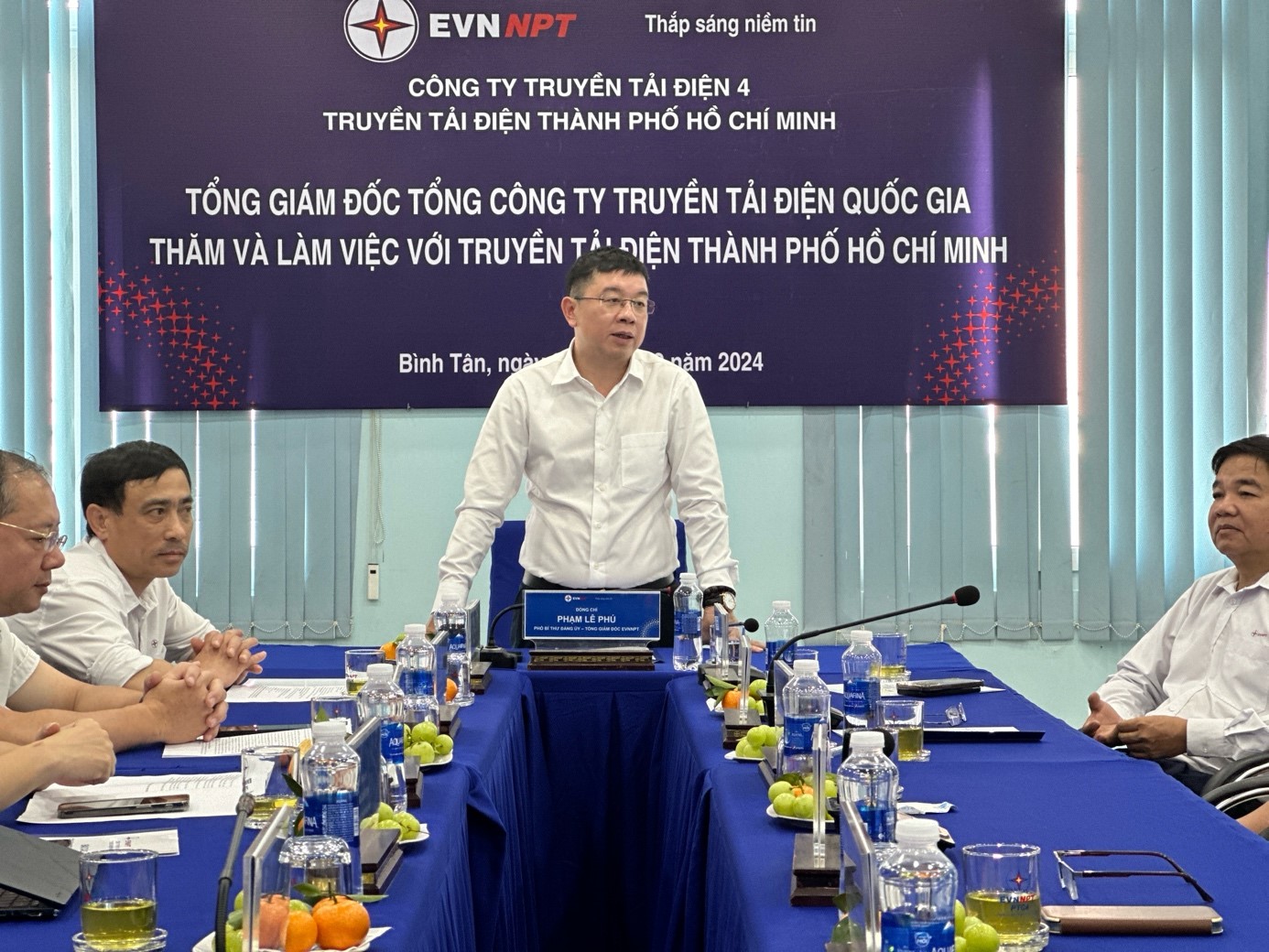 Tiếp và làm việc với đoàn công tác Tổng Công ty có ông Võ Đình Thủy – Bí thư Đảng ủy, Giám đốc Công ty Truyền tải điện 4 (PTC4); ông Nguyễn Văn Hóa – Phó Bí thư Đảng ủy, Phó Giám đốc Công ty; ông Nguyễn Văn Bảy – Phó Giám đốc Công ty; ông Nguyễn Phương Nam – Chủ tịch Công đoàn Công ty; về phía Truyền tải điện Thành phố Hồ Chí Minh, có ông Trịnh Đình Chính – Bí thư Đảng bộ bộ phận, Giám đốc Truyền tải điện Thành phố Hồ Chí Minh (TTĐHCM); các Phó Giám đốc, Trưởng các phòng, đội, trạm, tổ thao tác lưu động trực thuộc.