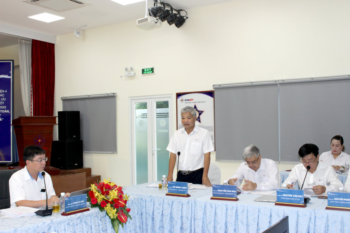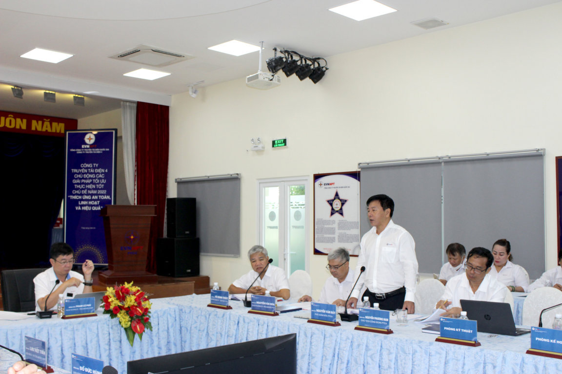 Tiếp theo phát biểu chỉ đạo của Đồng chí Phạm Lê Phú - Tổng Giám đốc EVNNPT. Ông Võ Đình Thủy – Giám đốc PTC4 trân trọng cảm ơn những ý kiến chỉ đạo rất sâu sát từng lĩnh vực hoạt động sản xuất và những công tác khác của PTC4. Phương hướng nhiệm vụ sắp tới PTC4 sẽ cụ thể hóa và bám sát chủ đề năm 2022 của EVNNPT” Thích ứng an toàn, linh hoạt, hiệu quả” cùng Nghị quyết số 20/NQ-HĐTV ngày 31/12/2021 của HĐTV EVNNPT về các công việc và nhiệm vụ quan trọng cần tập trung triển khai thực hiện trong năm 2022 và các nhiệm vụ, chỉ tiêu kế hoạch được giao./.
