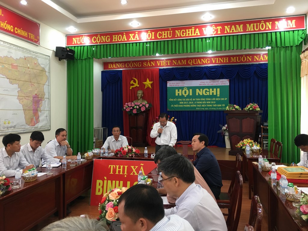 Đến dự có Ông Trần Phương Nam– Phó Chủ tịch UBND thị xã chủ trì Hội nghị; tham dự Hội nghị có đại diện lãnh đạo phòng PA04 Công an tỉnh Bình Phước, đại diện lãnh đạo UBND, Công an, Quân sự của các xã, thị trấn trên địa bàn thị xã. Về phía đơn vị QLVH lưới điện có ông Nguyễn Vỹ - Phó Giám đốc Truyền tải điện miền Đông 2 đồng chủ trì Hội nghị.