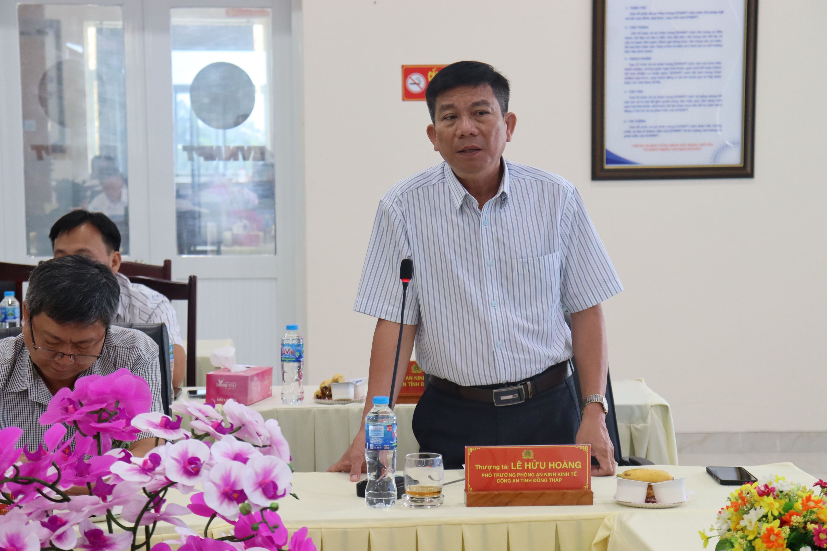 Đồng chí Thượng tá Lê Hữu Hoàng - Phó trưởng phòng An ninh kinh tế, Công an tỉnh Đồng Tháp phát biểu tại hội nghị.