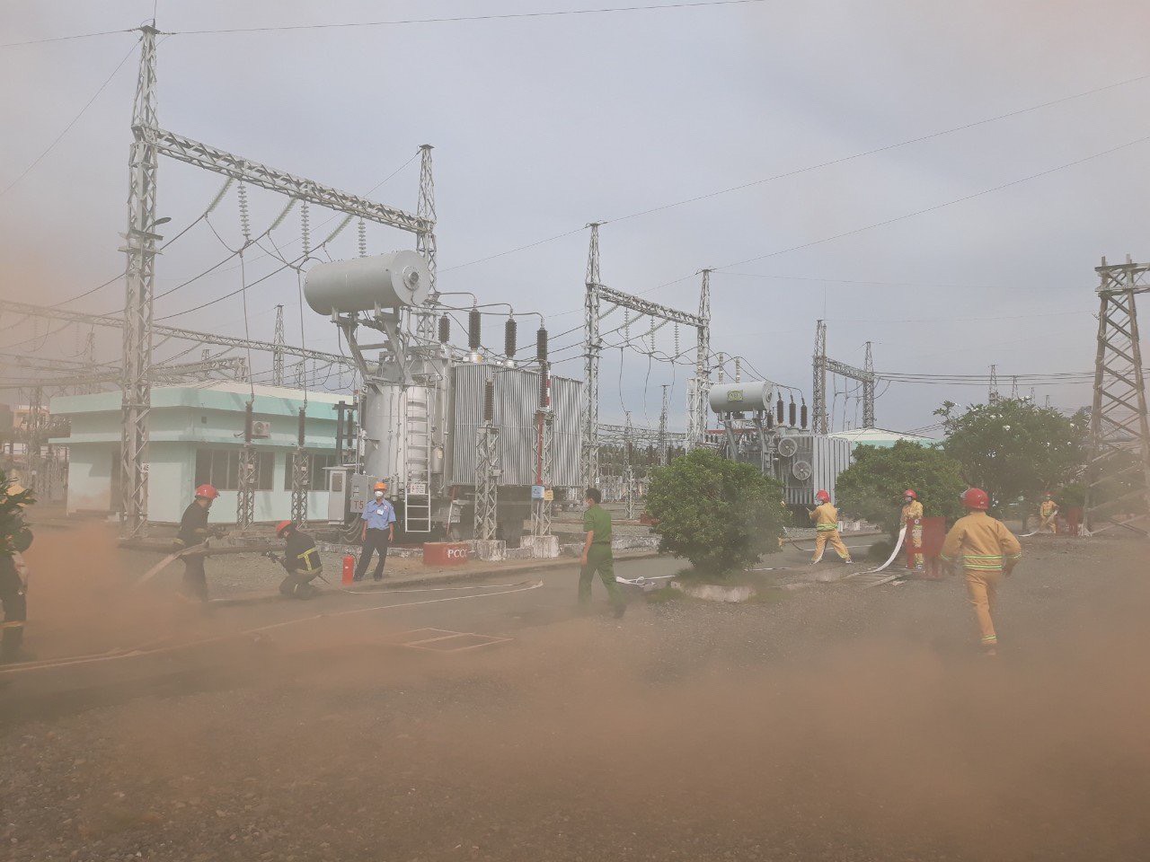 Ngay sau buổi bồi huấn nghiệp vụ PCCC&CNCH, Đội PCCC cơ sở Trạm biến áp 220kV Cát Lái đã phối hợp với Đội Cảnh sát PCCC&CNCH Công An Thành phố Thủ Đức tổ chức diễn tập phương án PCCC&CNCH năm 2021.
