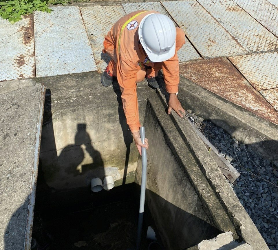 CBCNV Trạm 220kV Hóc Môn vớt rác tại các hố thu nước sân 220kV