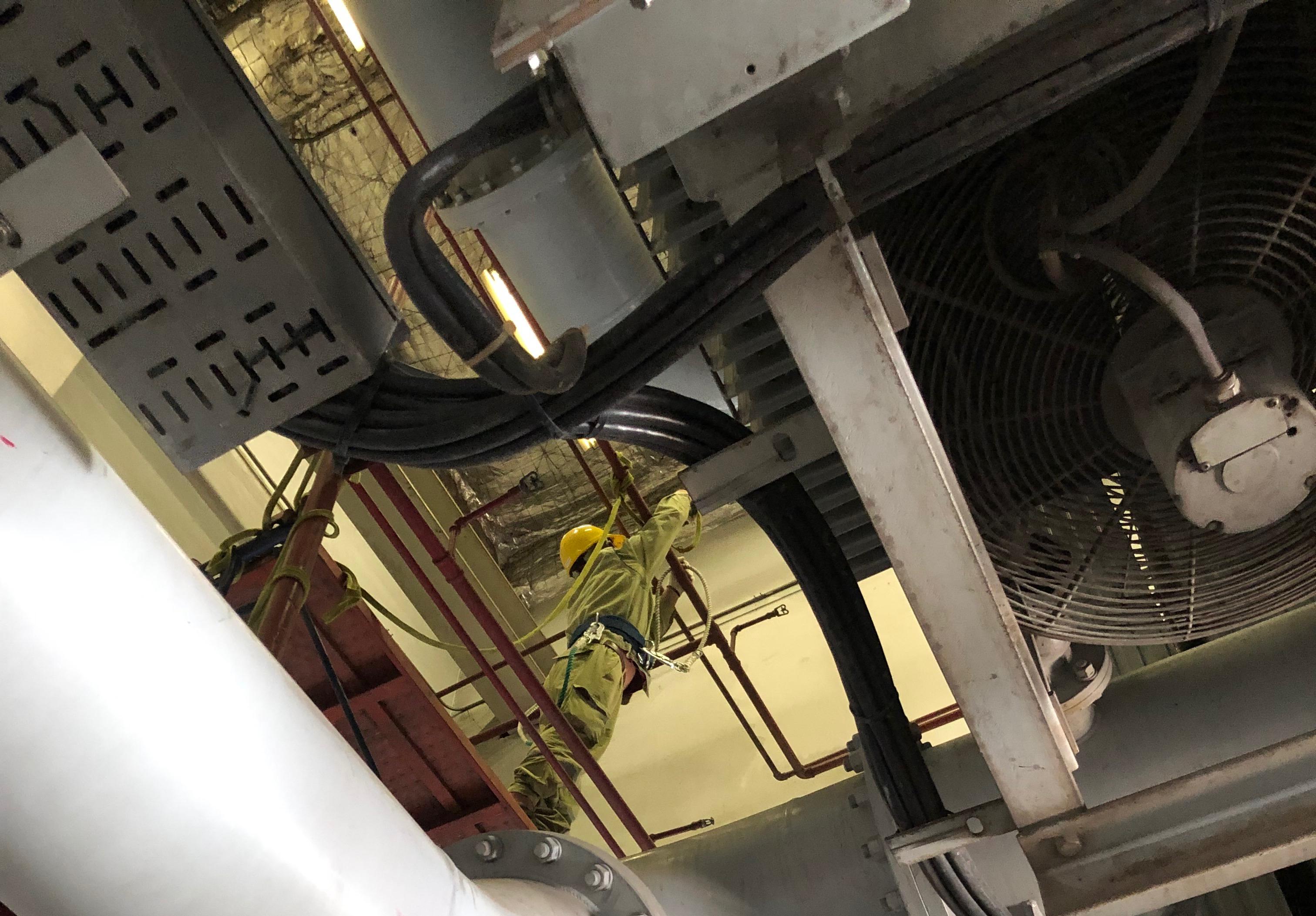 Các đầu cảm biến nhiệt được lắp ở độ cao 8m so với mặt đất, trước đây nếu hư hỏng sẽ thuê đơn vị ngoài thực hiện thay thế.