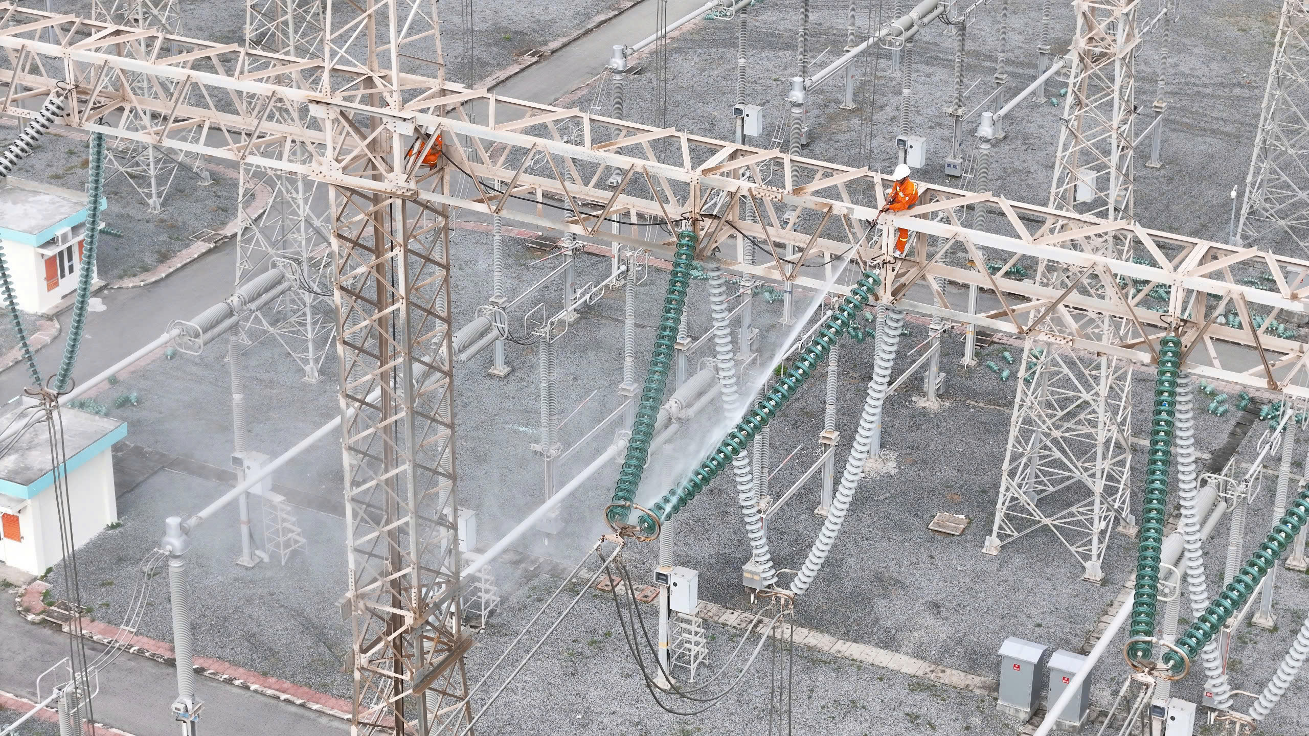 Công tác vệ sinh Hotline sứ cách điện tại Trạm 500kV Duyên Hải giáp Tết Nguyên đán Ất Tỵ 2025