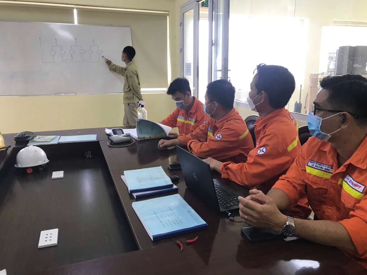 Chuyên gia ATS Nguyễn Doãn Hiệp trực tiếp hướng dẫn các kiến thức chung về hệ thống máy tính và hệ thống mạng LAN; Chuyên gia Phạm Văn Hiếu phụ trách trực tiếp hướng dẫn các vấn đề mạch nhị thứ phía 500kV theo thiết kế mới.