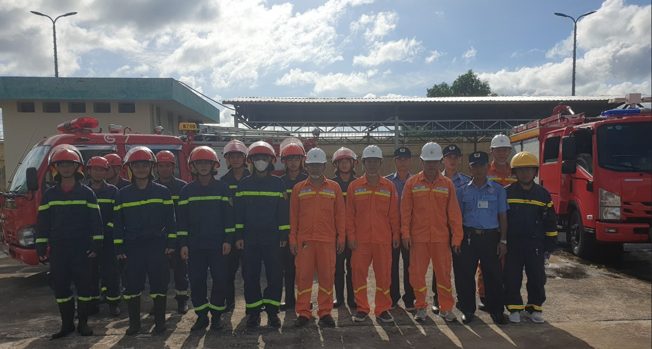 Lực lượng vận hành Trạm, lực lượng bảo vệ chụp hình lưu niện với Đội PCCC & CNCH