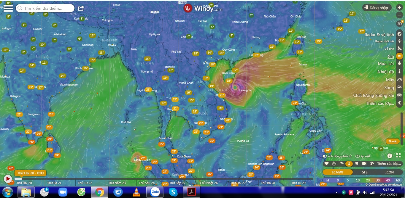 Theo dõi cơn bão Rai (cơn bão số 9) trên trang Windy.com