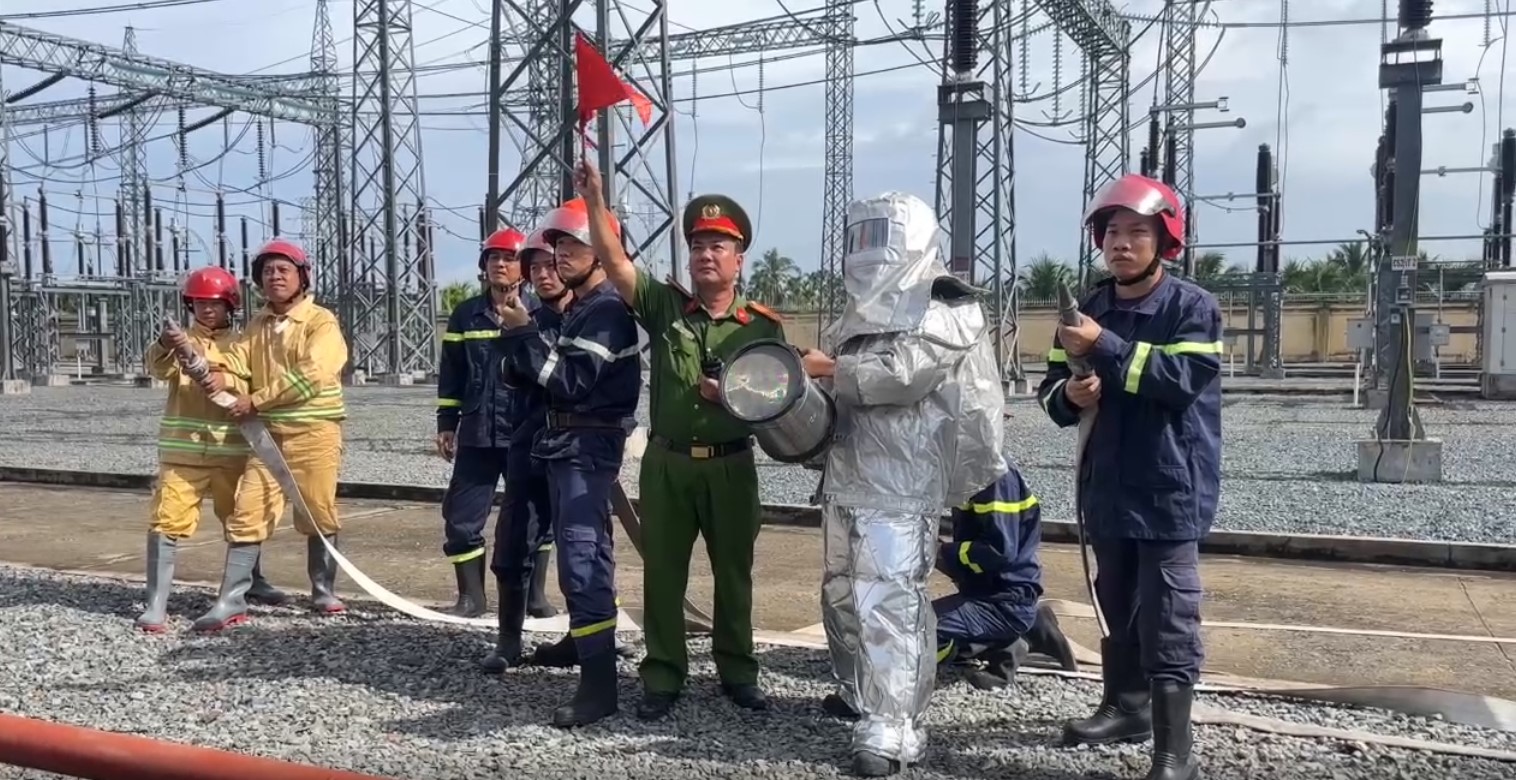 Tình huống giả định rằng vào lúc 9h00, xảy ra cháy tại máy máy máy biến áp AT1. Phát hiện cháy, lực lượng PCCC cơ sở lập tức cô lập lưới điện khu vực xảy ra cháy và triển khai phương án chữa cháy ban đầu, đồng thời báo cho lực lượng Cảnh sát PCCC&CNCH Công an tỉnh Bến Tre đến hỗ trợ chữa cháy, cứu nạn, cứu hộ. Thời điểm xảy ra cháy, có 1 nạn nhân bị ngạt khói, mắc kẹt trong khu vực này.