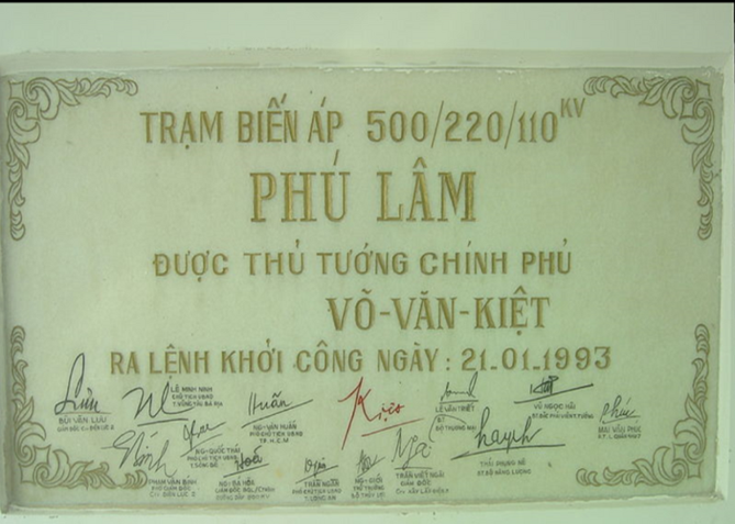 Biển kỷ niệm lễ khởi công trạm biến áp Phú Lâm