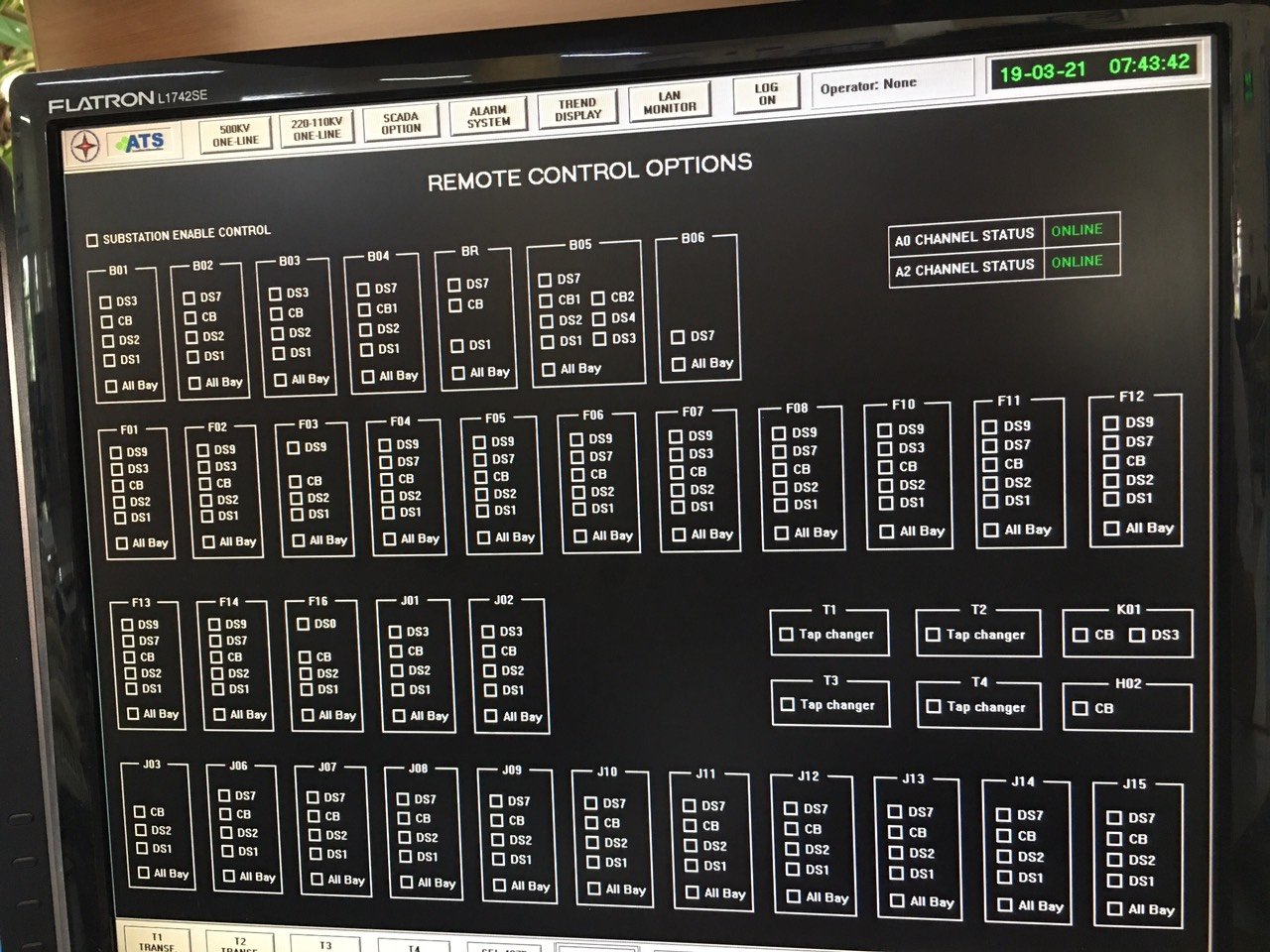 Hệ thống giám sát dầu Online để giám sát chất lượng hàm lượng khí trong dầu cách điện Máy biến áp AT1 và AT2.