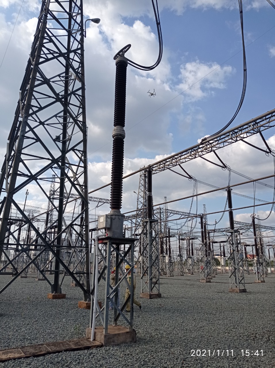 Sử dụng FlyCam để giám sát các thiết bị nhất thứ khi có dấu hiệu bất thường, nghi ngờ về rịn dầu, chảy keo hoặc sứ bị nhiễm bẩn ở các TU, TI.