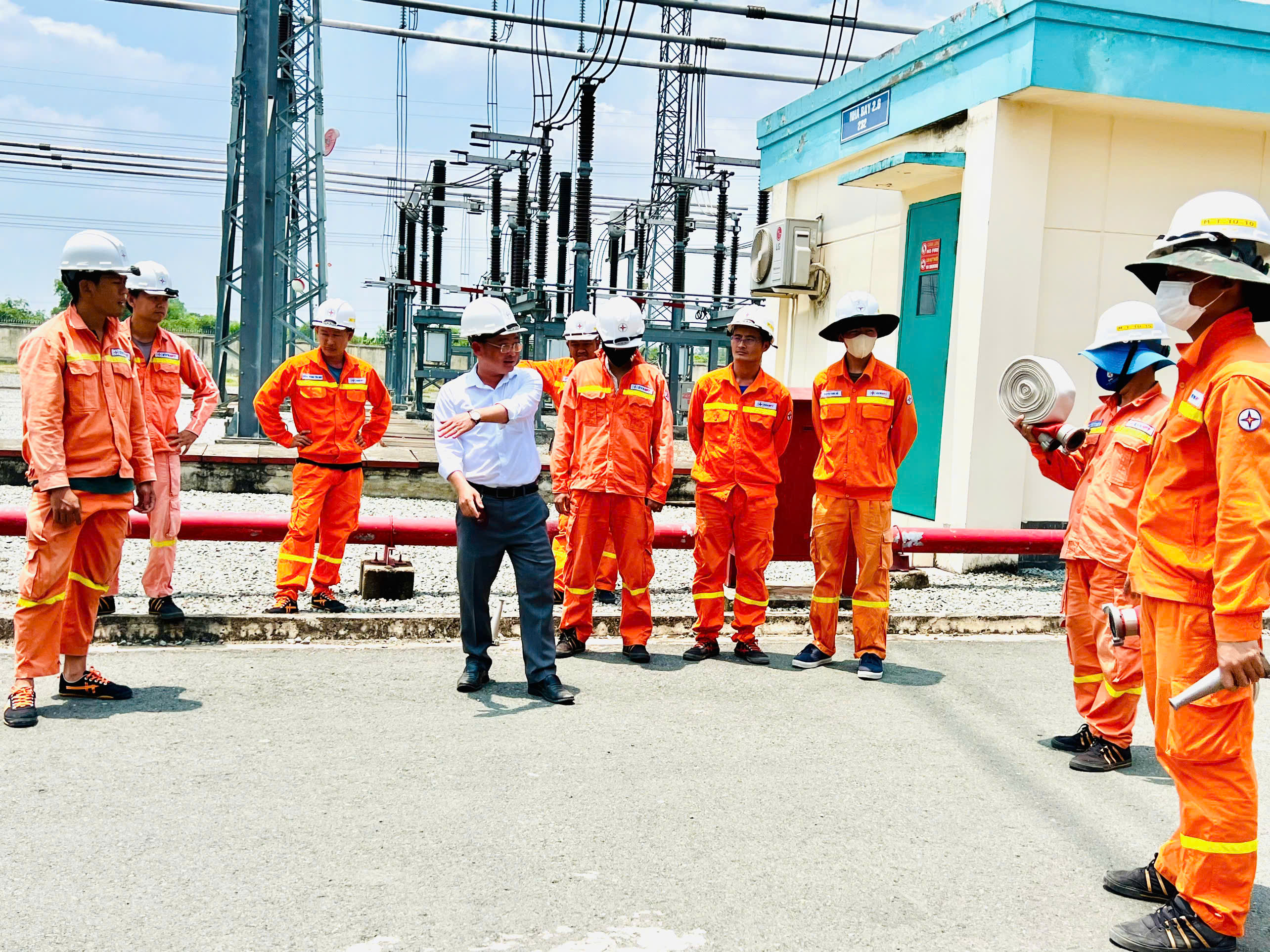 Ông Nguyễn Tiến Hữu - Trưởng trạm 500kV hướng dẫn kỹ thuật lăn vòi.