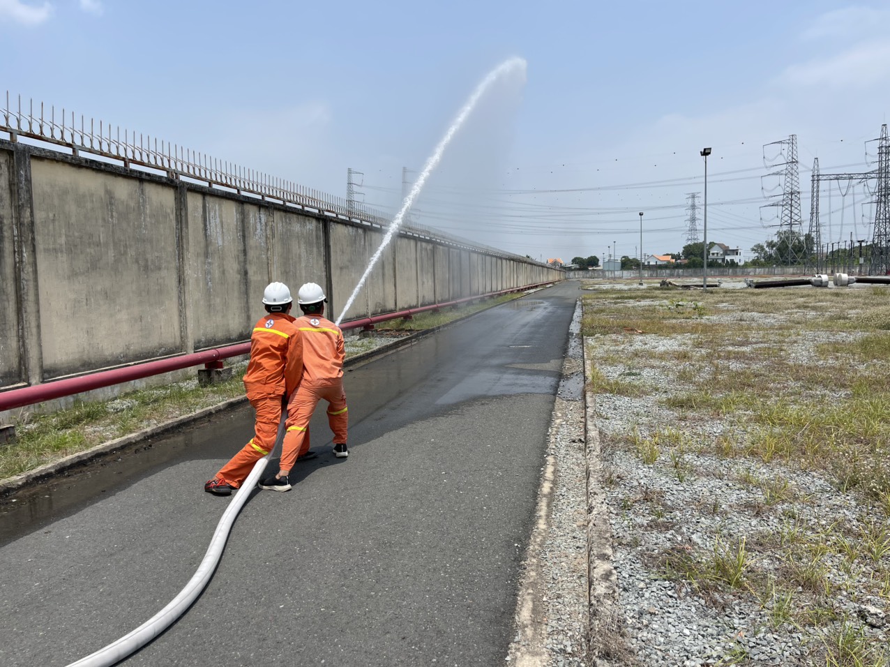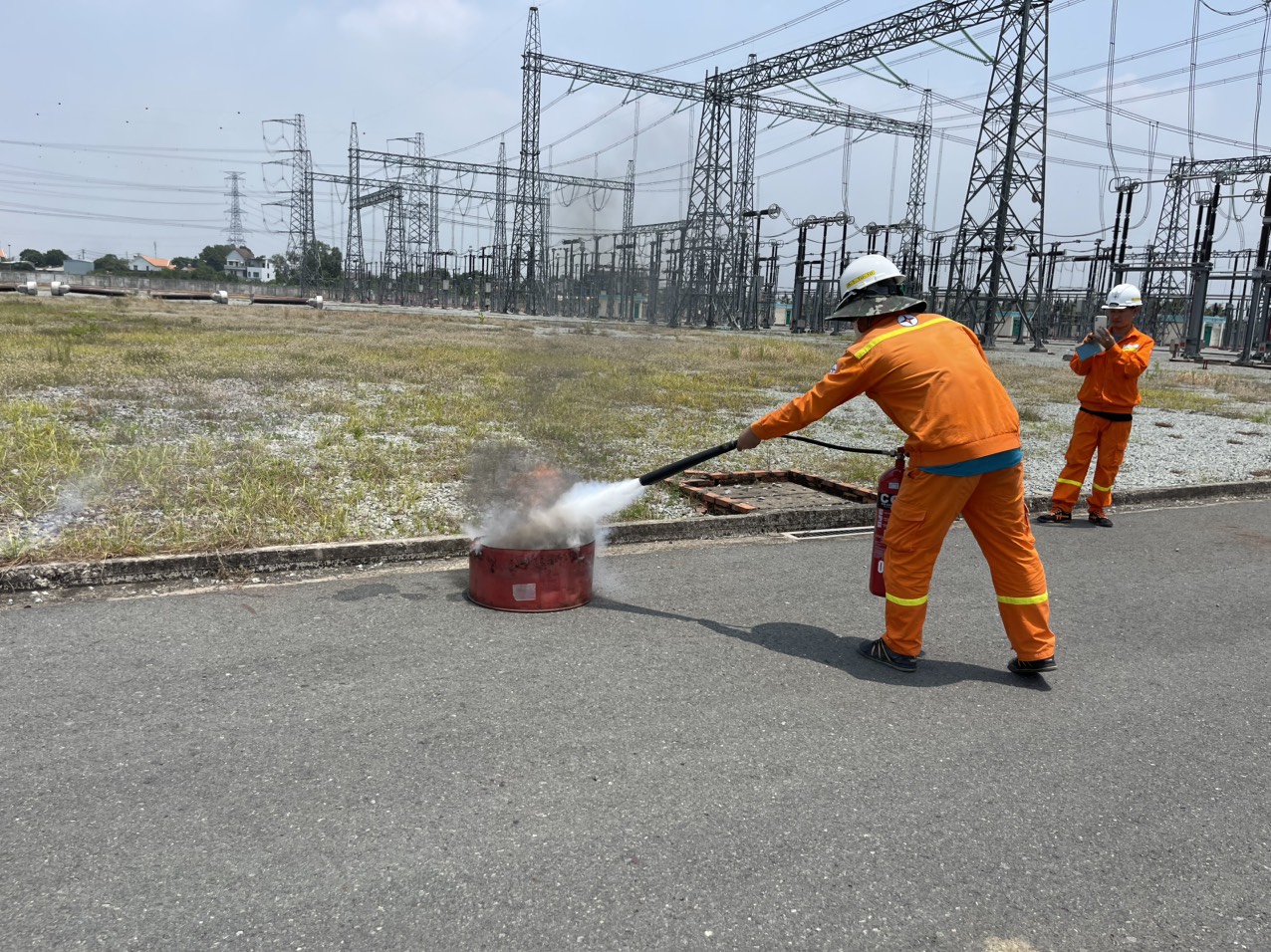 CBCNV trạm 500kV Tân Uyên tự thực tập theo các tình huống trong Phương án chữa cháy cơ sở đã được Phòng Cảnh sát PCCC và CNCH Công an Tỉnh Bình Dương phê duyệt ngày 12/03/2020. Triển khai đội hình chữa cháy, huấn luyện sử dụng phương tiện chữa cháy được trang cấp tại cơ sở.