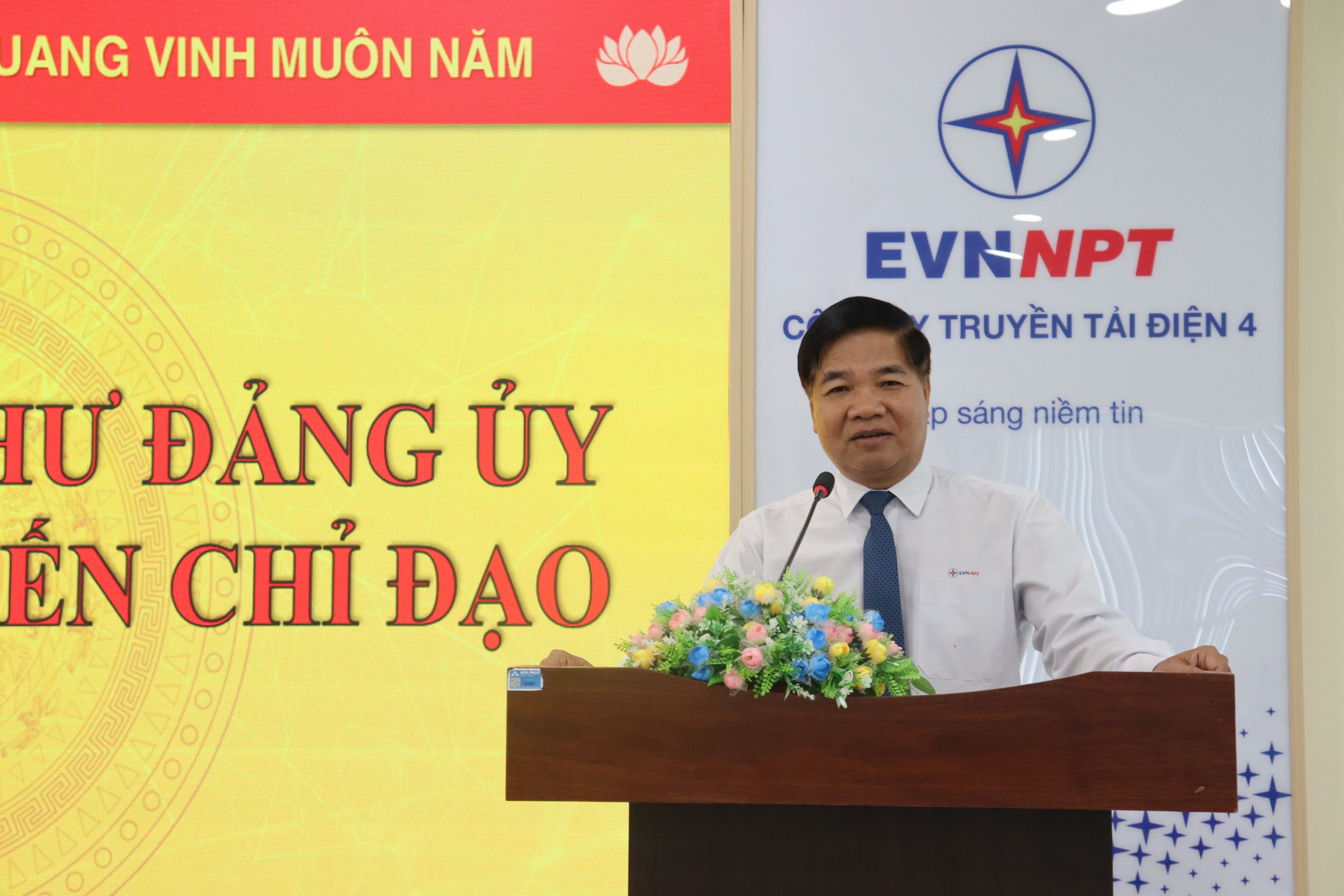 Đồng chí Võ Đình Thủy – Bí thư Đảng ủy, Giám đốc Công ty Truyền tải điện 4 phát biểu chúc mừng.