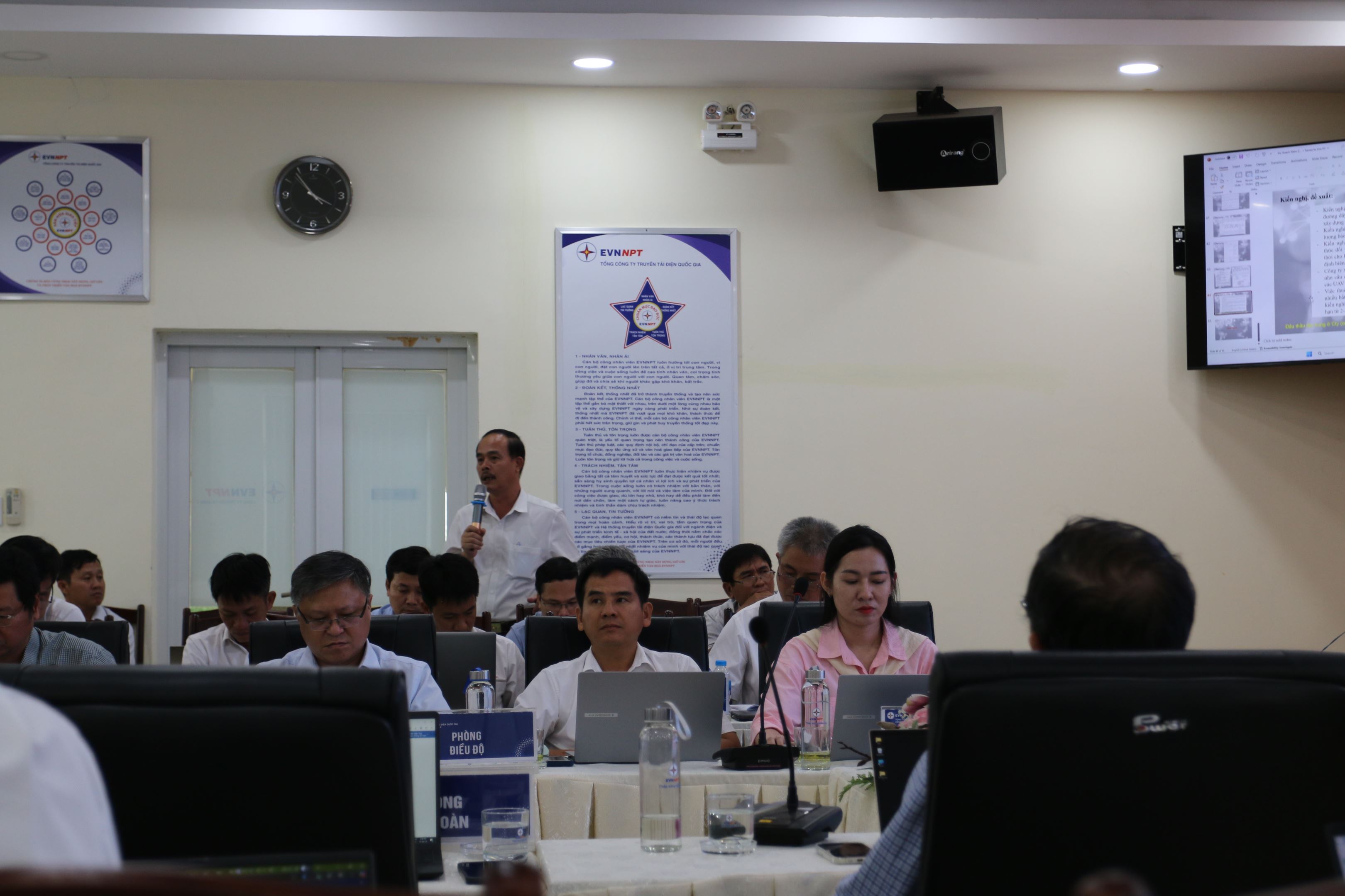 Tại cuộc họp, sau khi nghe TTĐMĐ2 báo cáo tình hình triển khai cũng như các giải pháp thực hiện kế hoạch nhiệm vụ trong năm 2025 và lắng nghe các ý kiến phát biểu của lãnh đạo các phòng chức năng, ông Võ Đình Thủy - Bí thư Đảng ủy, Giám đốc PTC4 đã đánh giá cao về những nỗ lực vượt khó khăn của tập thể CBCNV TTĐMĐ2 đã đạt được kết quả tốt và biểu dương đơn vị đã hoàn thành các nhiệm vụ công ty giao thêm như chấm công đa chiều 360 độ, ứng dụng phần mềm viết phiếu thao tác, triển khai bay UAV kiểm tra thiết bị trong trạm, thực hiện video clip bàn giao ca trực trong năm 2024 và 3 tháng đầu năm 2025. Giám đốc PTC4 yêu cầu TTĐMĐ2 cần đề ra những giải pháp thiết thực hơn nhằm nâng cao hiệu quả công việc, kiên quyết khắc phục dứt điểm các tồn tại hạn chế, trong đó chú ý các nội dung: Tăng cường công tác đào tạo nâng cao năng lực trình độ tay nghề cho lực lượng lao động trực tiếp để đảm bảo QLVH lưới điện an toàn, chú trọng tổ chức tập huấn cho các công nhân mới được tuyển dụng nhằm đáp ứng yêu cầu công tác; Chủ động xây dựng các phương án, tình huống xử lý sự cố, nhận diện rủi ro trong công tác quản lý vận hành; phối hợp chính quyền địa phương các cấp đẩy mạnh tuyên truyền Luật Điện lực số 61/2024/QH15 và Nghị định 62/2025/NĐ-CP có hiệu lực. Thường xuyên tuyên truyền bảo vệ hành lang an toàn lưới điện cao áp; Nghiêm túc áp dụng hệ thống nhận diện thương hiệu của EVN và EVNNPT.