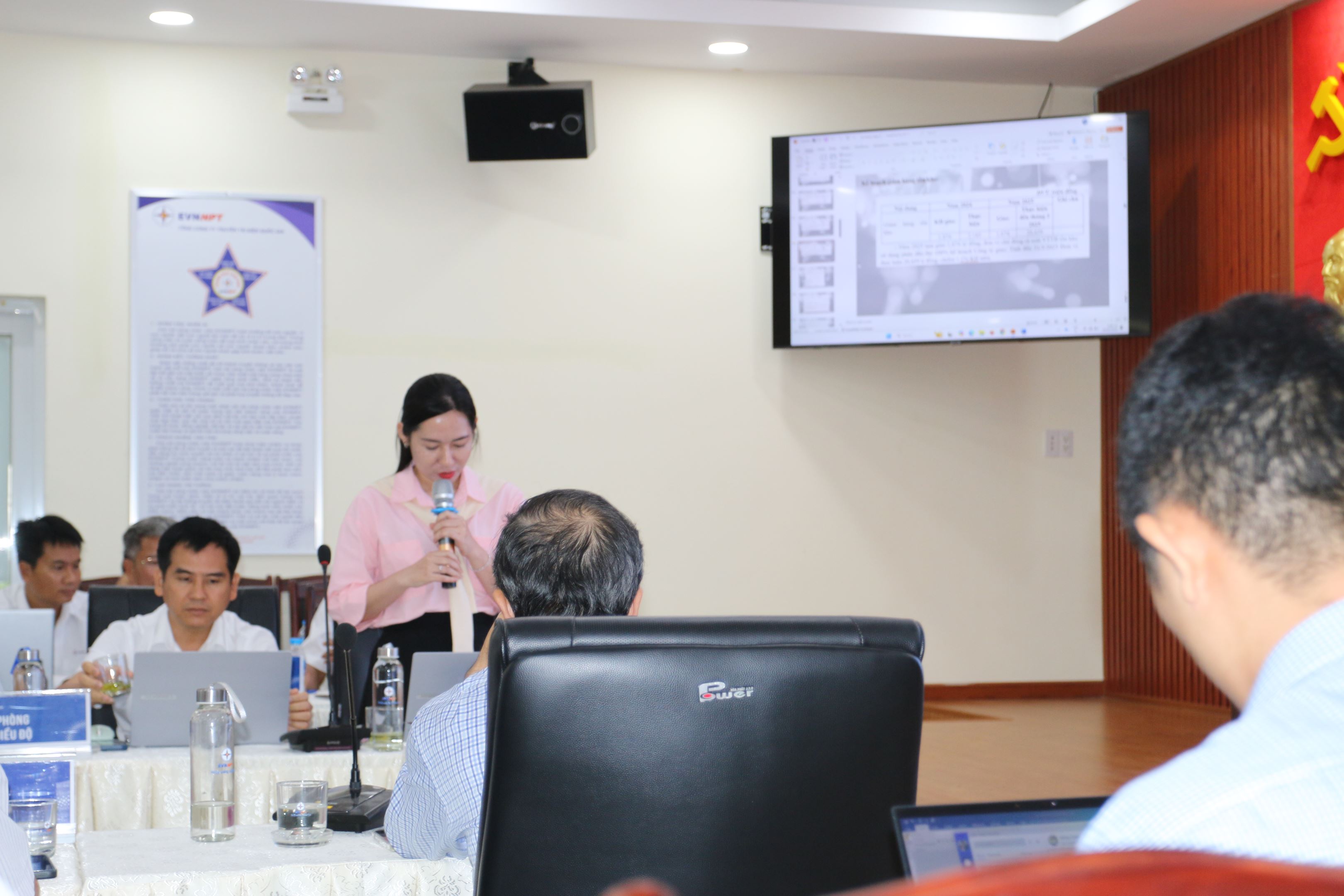 Bà Lê Thị Thùy Trang - Chuyên viên Văn phòng Công ty báo cáo tại hội nghị.