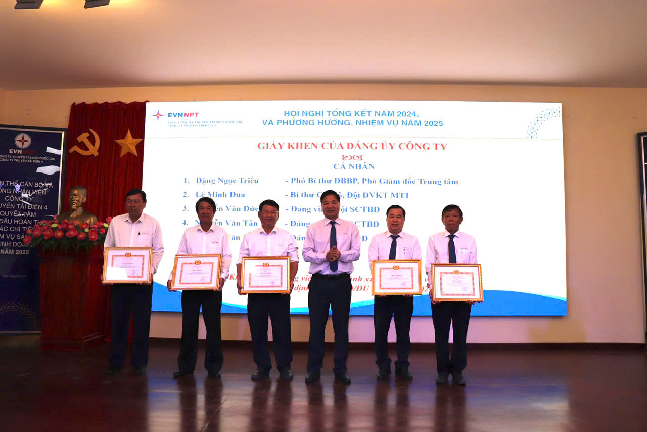 Tại Hội nghị các Tập thể, Cá nhân có thành tích xuất sắc trong công tác Đảng và chuyên môn năm 2024 đã được Lãnh đạo Công ty Truyền tải điện 4 trao tặng Bằng khen, Giấy khen nhằm tôn vinh, khích lệ tinh thần phấn đấu của cán bộ công nhân viên để hoàn thành tốt hơn nữa nhiệm vụ trong công tác được giao.