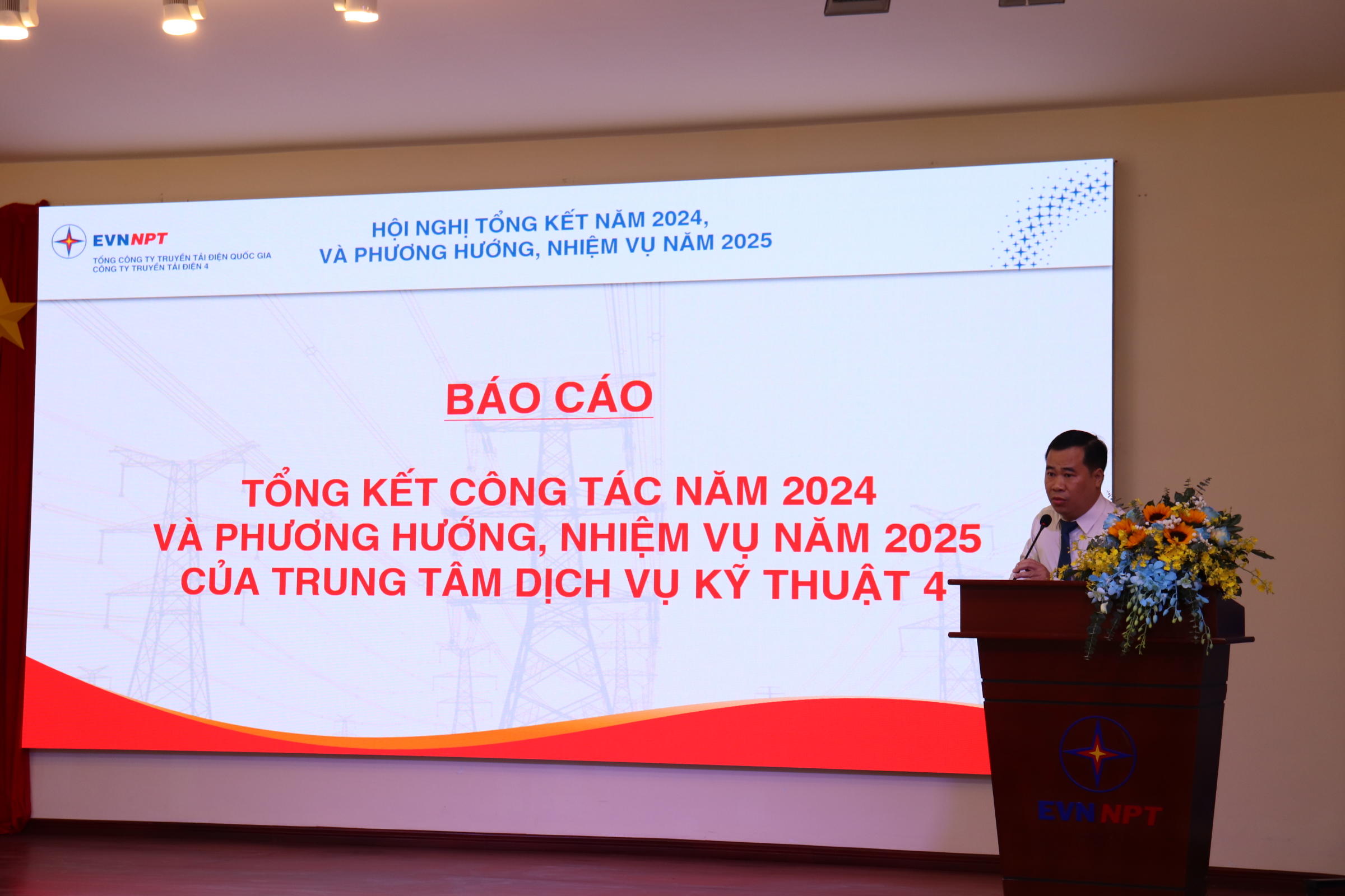 Trình bày báo cáo tại hội nghị đồng chí Đặng Ngọc Triều – Phó Bí thư ĐBBP, Phó giám đốc Trung tâm cho biết: Năm 2024, là năm nhiều biến động, là năm tái cơ cấu Công ty Dịch vụ kỹ thuật (NPTS), nên Đảng ủy Tổng Công ty Truyền tải điện quốc gia (EVNNPT) có Quyết định số 470-QĐ/ĐU của Đảng ủy EVNNPT về chuyển giao tổ chức Đảng và đảng viên từ Đảng bộ NPTS sang Đảng bộ Công ty Truyền tải điện 4 .