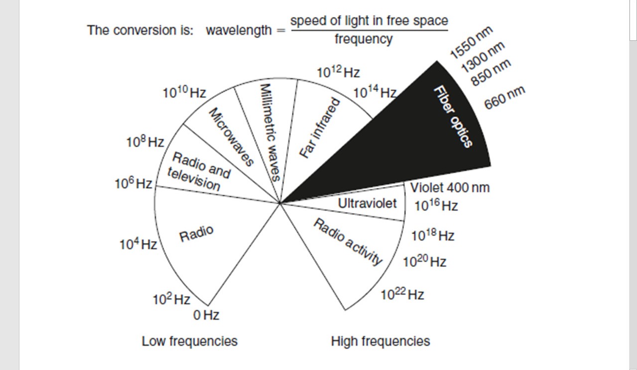 Hình 2.1 mô tả sự phân chia của phổ sóng điện từ theo hai thông số thông dụng là tần số và bước sóng.