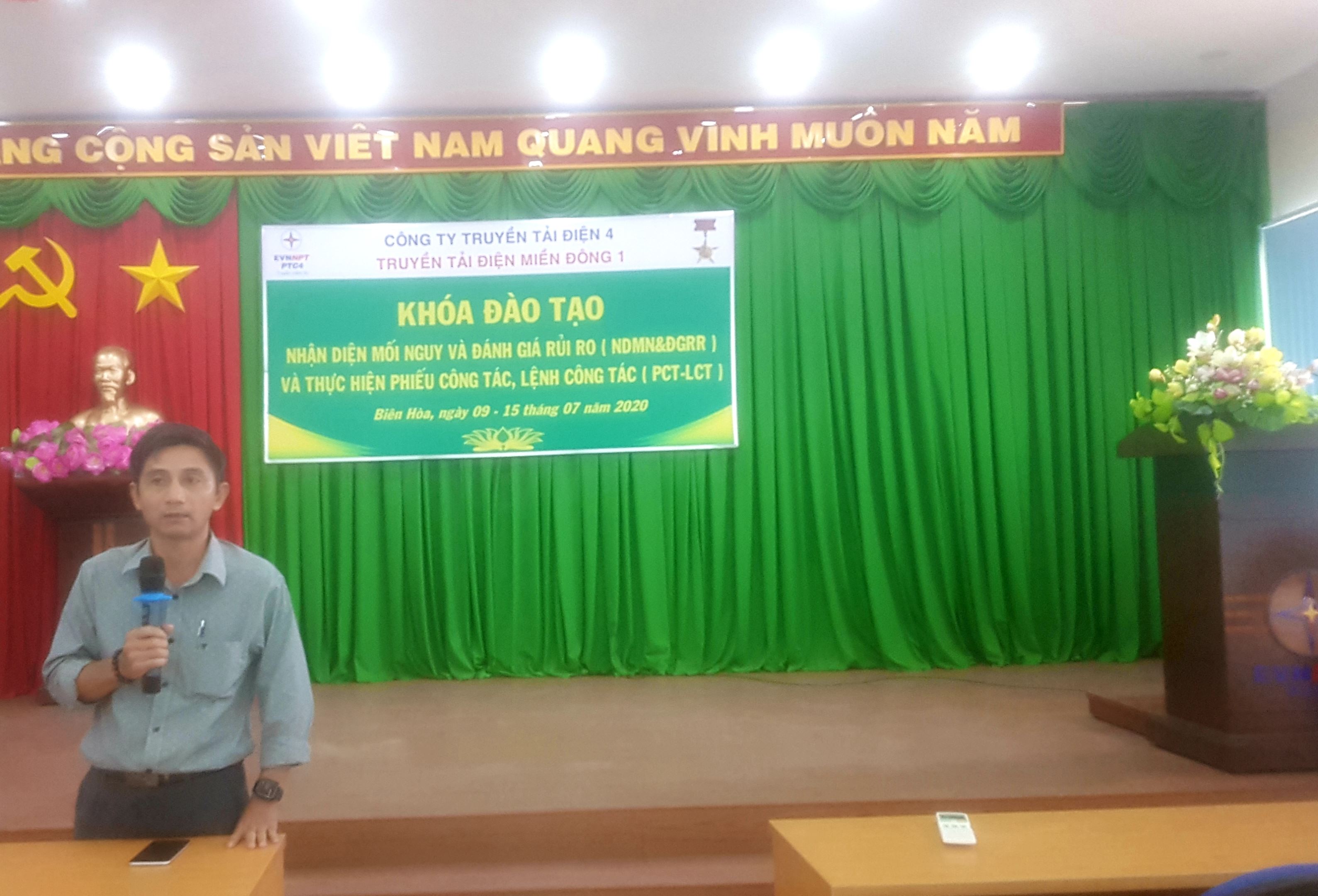 Từ ngày 09 đến ngày 15 tháng 07 năm 2020, Truyền tải điện Miền Đông 1 (TTĐMĐ1) đã tổ chức lớp đào tạo nhận diện mối nguy và đánh giá rủi ro (NDMN&ĐGRR) và thực hiện phiếu công tác, lệnh công tác (PCT-LCT) cho các CBCNV thuộc phòng Kỹ thuật, các Đội TTĐ, Trạm biến áp, Tổ Thao tác lưu động (Tổ TTLĐ).