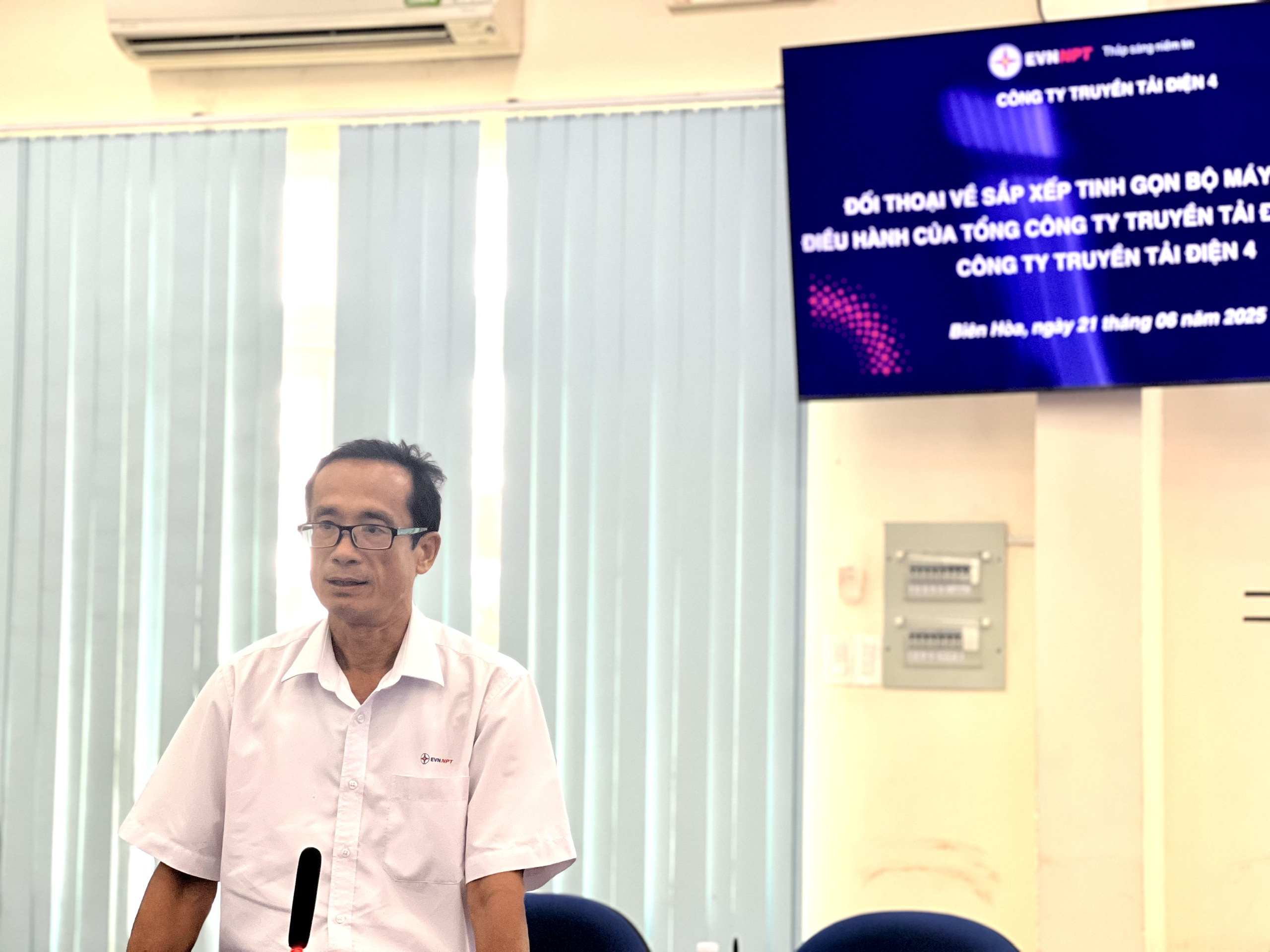Tại buổi đối thoại, đồng chí Giám đốc Công ty đã phổ biến rõ chủ trương sắp xếp lại tổ chức của Tổng công ty (EVNNPT) theo Nghị quyết số 23-NQ/HĐTV ngày 17 tháng 6 năm 2025 của (EVNNPT), nhấn mạnh mục tiêu nâng cao hiệu quả hoạt động thông qua chuyển đổi số, ứng dụng khoa học công nghệ và tinh gọn bộ máy. Đồng thời lắng nghe những tâm tư, nguyện vọng của cán bộ công nhân viên khối gián tiếp trong quá trình chuyển đổi tổ chức.