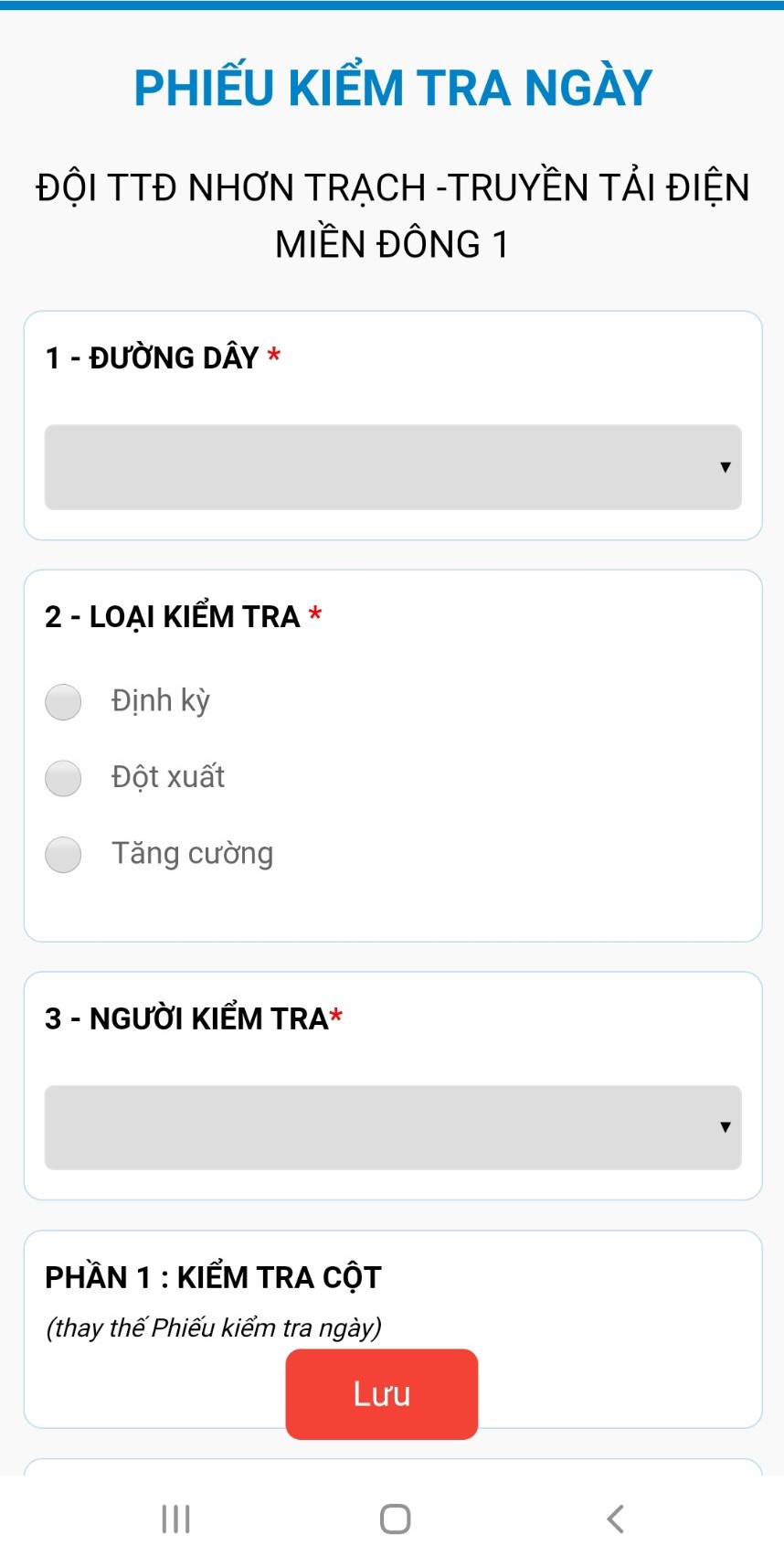 Để thực hiện phần mềm này trong công tác kiểm tra đường dây, tại hiện trường toán công tác sẽ kiểm tra từng vị trí cột, sau đó dùng điện thoại thông minh truy cập đường link, nhập các dữ liệu theo mẫu đã được lập sẵn về hiện trạng thực tế trên đường dây và gửi lên hệ thống. Cán bộ kỹ thuật tại Đội sẽ kiểm tra từng nhóm công tác, có thể xuất các báo cáo theo file mẫu để lưu lại file mềm trên cây thư mục trong máy tính hoặc in ra ký khi cần thiết.