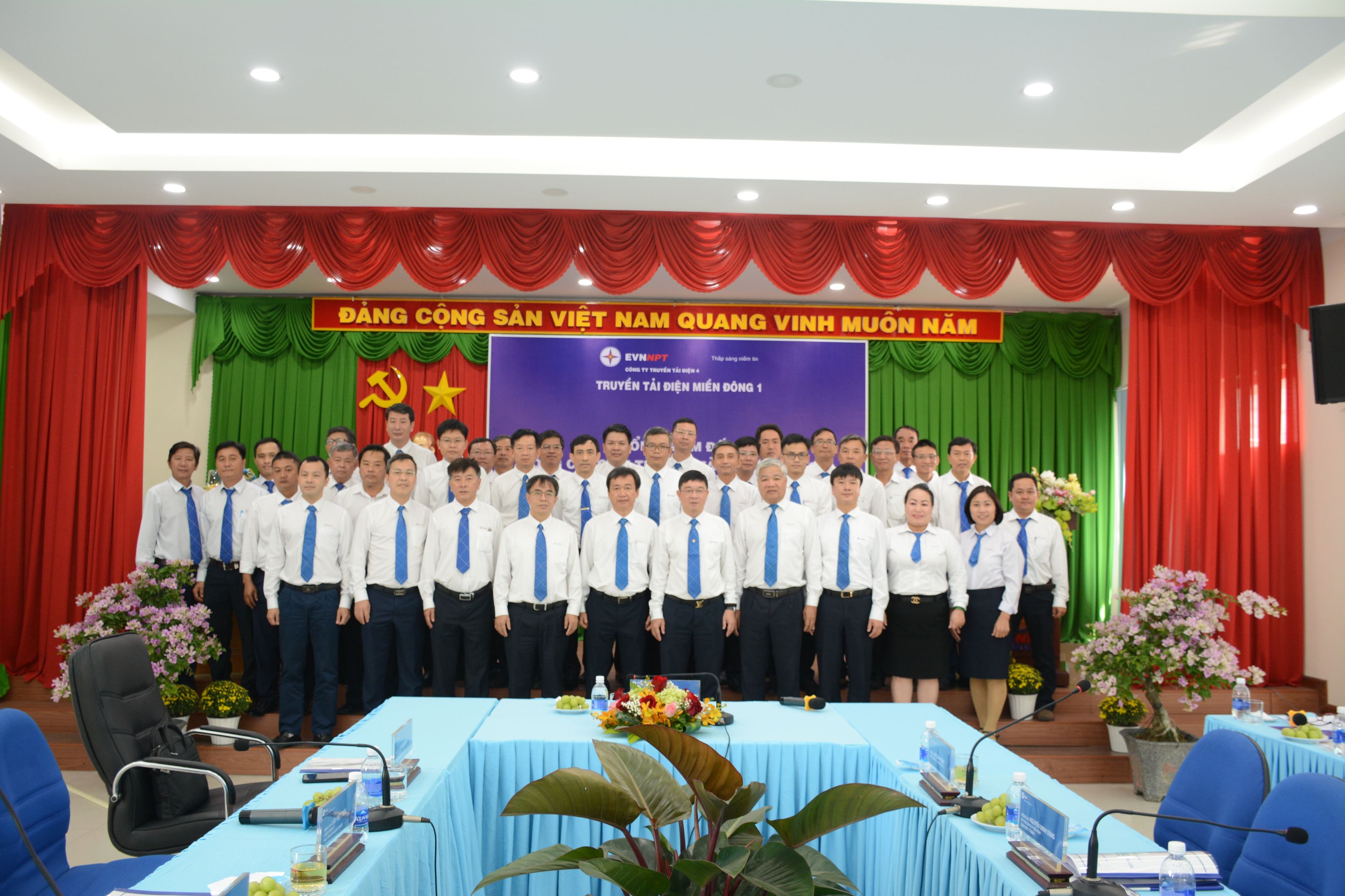 Các đồng chí lãnh đạo Tổng Công ty Truyền tải điện Quốc gia cùng với lãnh đạo Công ty, lãnh đạo Truyền tải điện Miền Đông 1 chụp hình lưu niệm.