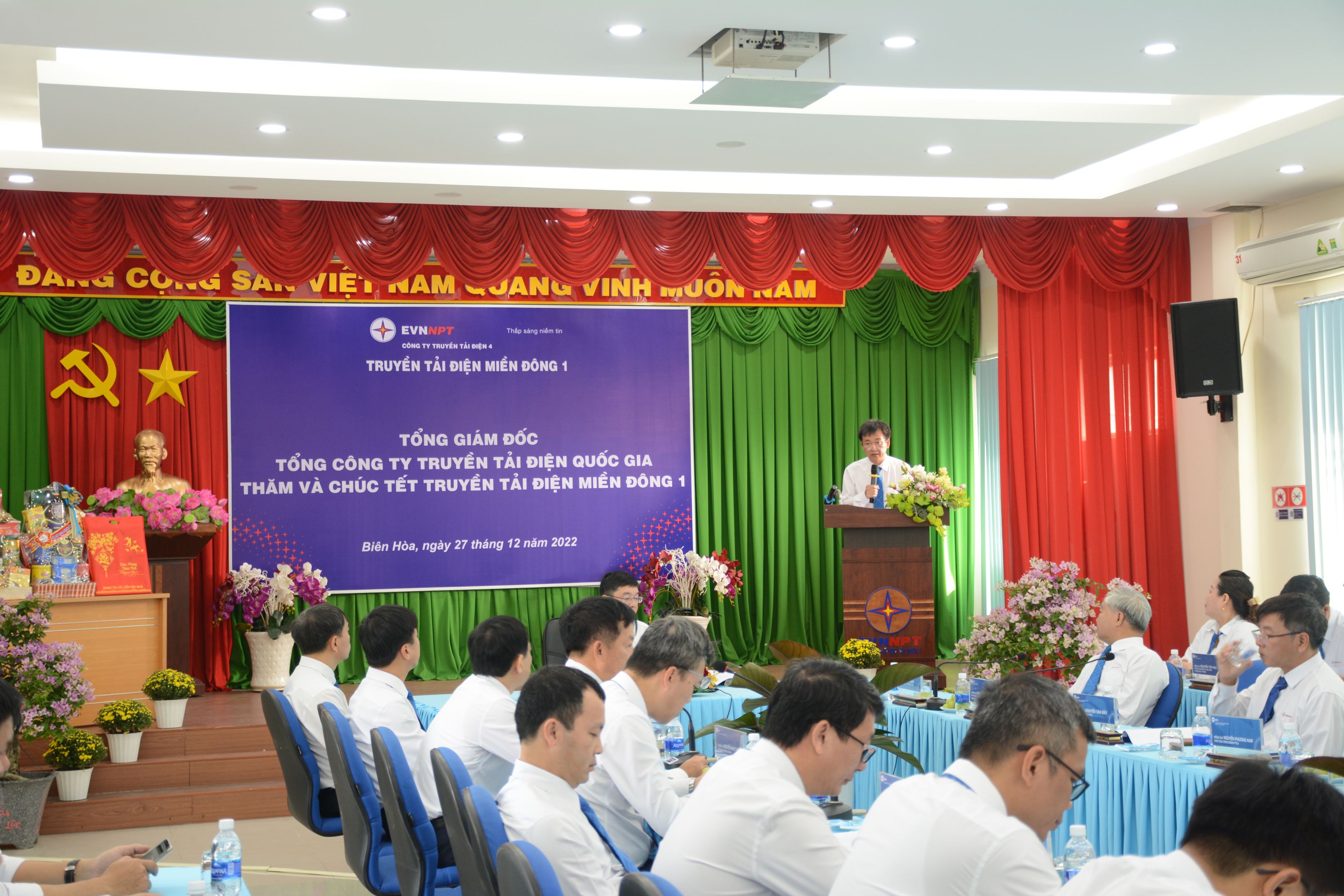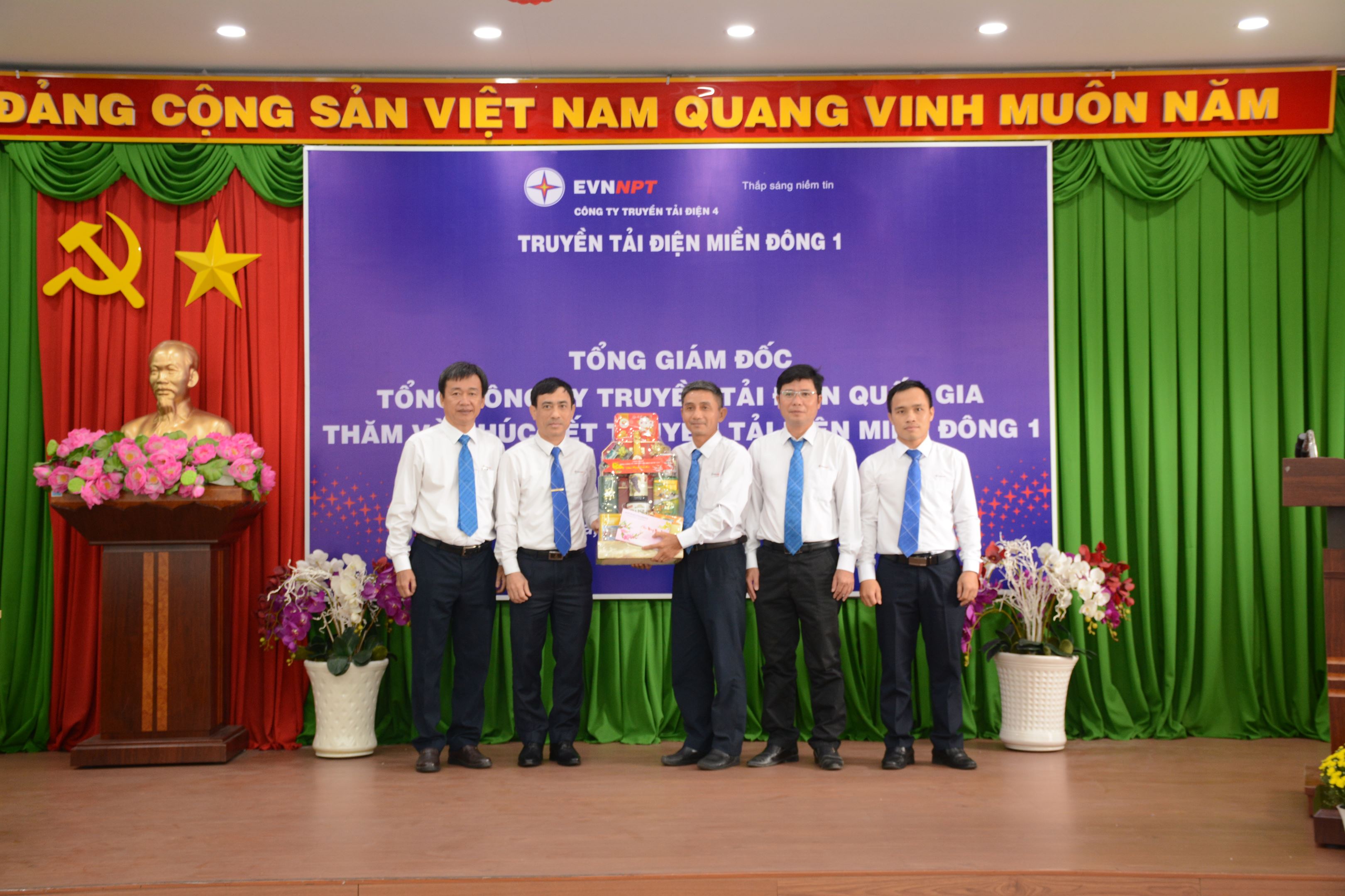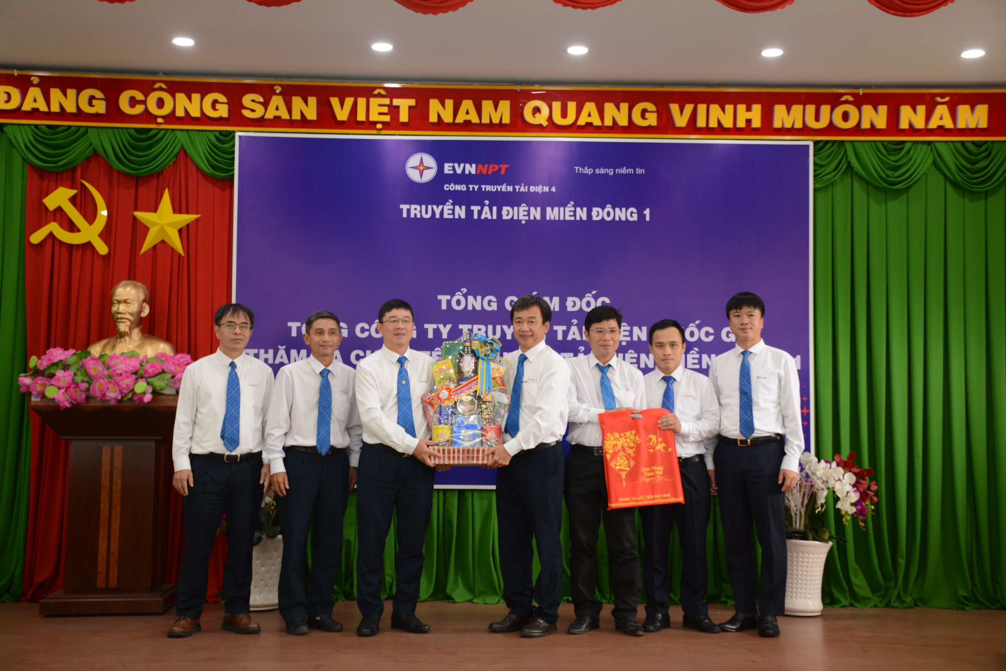 Đồng chí Phạm Lê Phú – Phó Bí thư Đảng ủy, Tổng Giám đốc EVNNPT tặng quà Tết cho tập thể CBCNV TTĐ Miền Đông 1