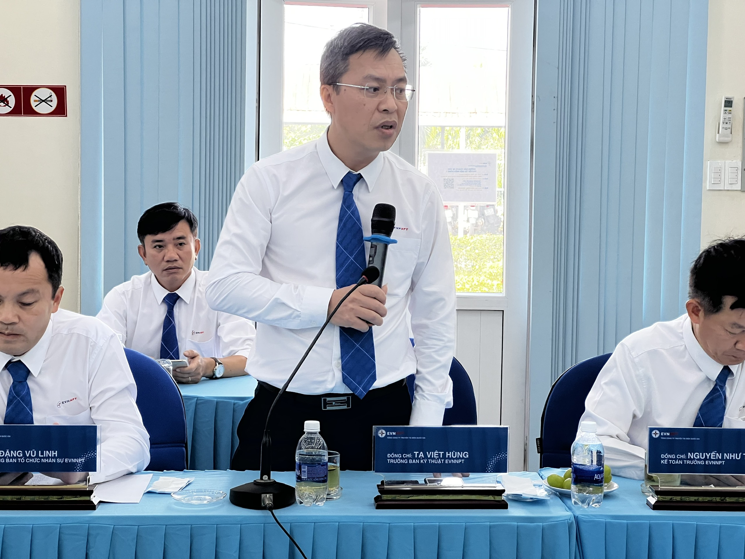 Đồng chí Tạ Việt Hùng - Trưởng ban Kỹ thuật EVNNPT phát biểu tại buổi làm việc.