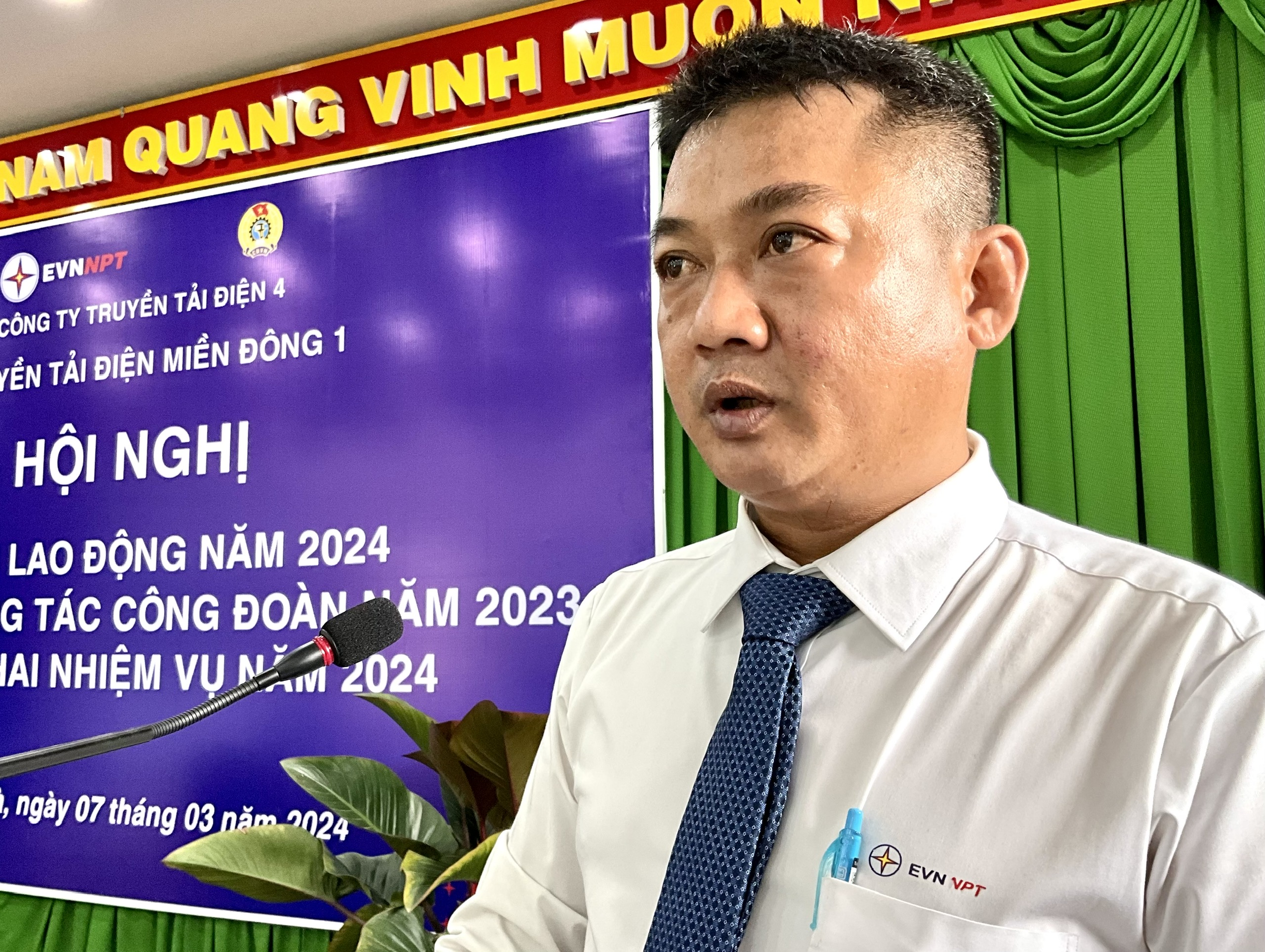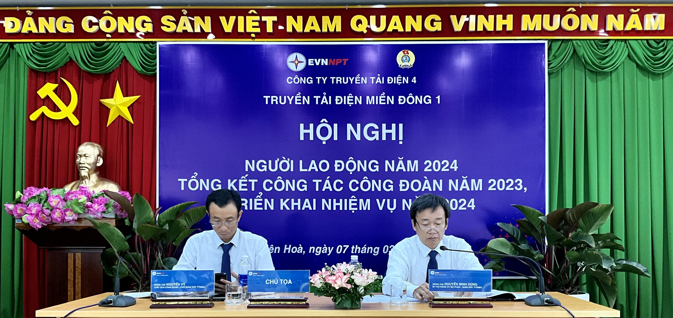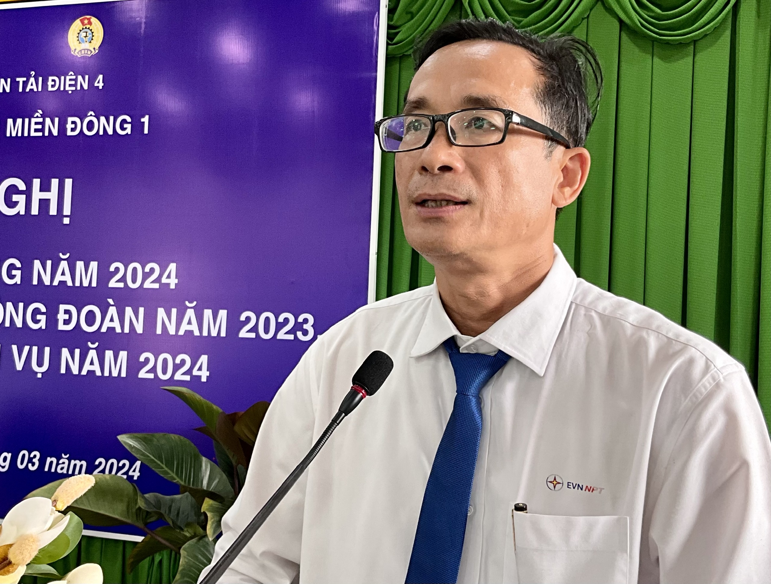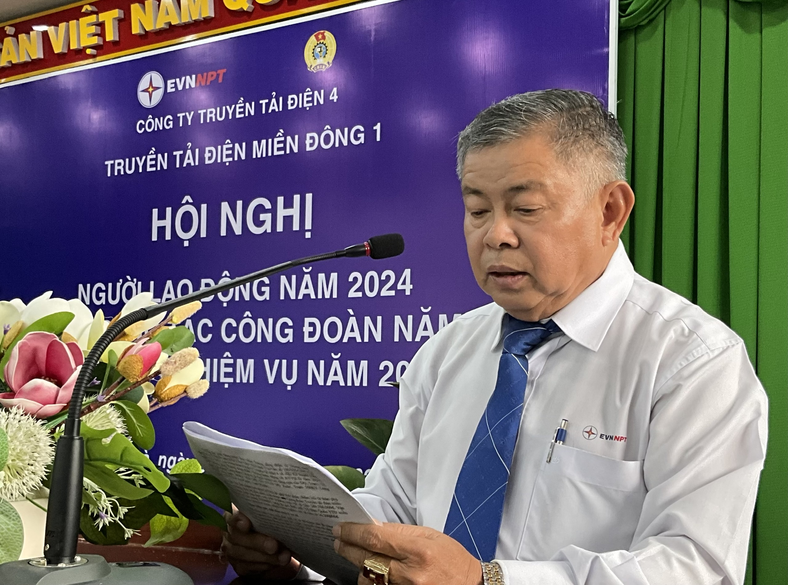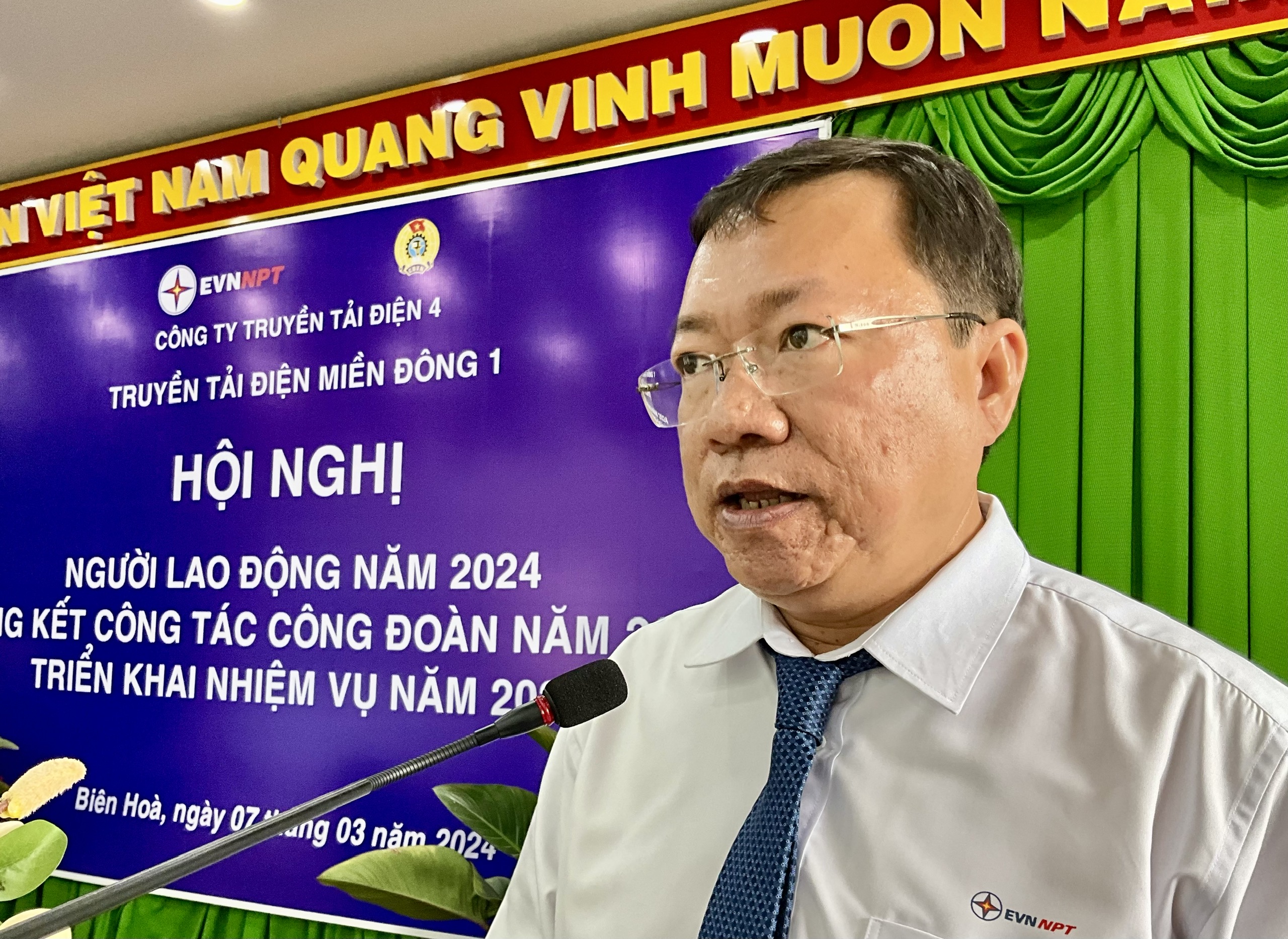 Phát biểu chỉ đạo tại hội nghị, đồng chí Nguyễn Phương Nam đã chúc mừng các thành quả đạt được của Truyền tải điện miền Đông 1 trong năm qua, đồng chí biểu dương về các mặt hoạt động Công đoàn đơn vị, hoan nghênh tinh thần lá lành đùm lá rách, tương thân tương ái của tập thể cán bộ đoàn viên công đoàn đơn vị. Đồng chí cũng thông tin một số điểm mới trong việc thực hiện dân chủ ở cơ sở năm 2024, trong đó có việc tăng cường công tác đối thoại định kỳ tại đơn vị 01 lần/năm tại cấp đơn vị; đồng chí đề nghị đơn vị quan tâm triển khai thực hiện nghị quyết số 353/NQ-ĐU của Ban Chấp hành Đảng bộ Công ty về bảo vệ, chăm sóc và nâng cao sức khỏe người lao động, theo đó đơn vị cấn lập kế hoạch hành động trong việc quản lý, phân công công việc phù hợp với sức khỏe của người lao động theo quy định. Đề nghị CBCNV TTĐMĐ1 tuyệt đối tuân thủ việc chấp hành quy định khi tham gia giao thông, quán triệt khẩu hiệu “Đã uống rượu bia thì không lái xe”; Đồng chí cũng biểu dương và đề nghị CBCNV đơn vị tiếp tục phát huy tốt phong trào phát huy sáng kiến, cải tiến hợp lý hóa sản xuất; yêu cầu đơn vị tiếp tục thực hiện văn hoá doanh nghiệp để góp phần vào việc hoàn thành nhiệm vụ mà Công ty đã tin tưởng giao phó.