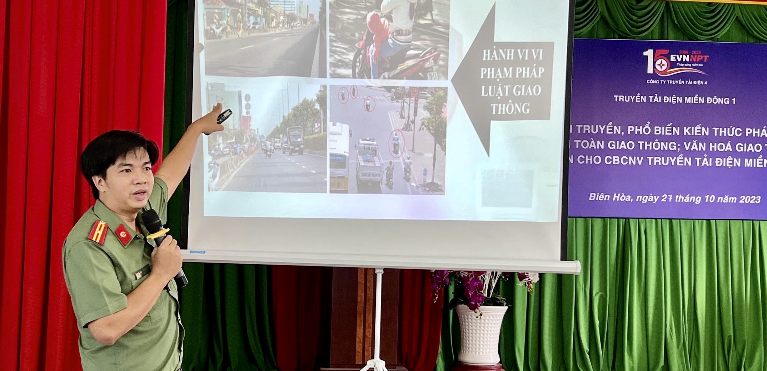 Xuyên suốt chương trình, đồng chí Phạm Lê Duy Trường đã phổ biến những kiến thức pháp luật cơ bản liên quan đến ATGT; Các Quy định về công tác quản lý ATGT hiện hành; tình hình TNGT, các vấn đề nổi cộm đang diễn ra trên các diễn đàn xã hội làm ảnh hưởng và tác động xấu lên xã hội khi ý thức người tham gia giao thông chưa được nâng cao; các vấn nạn đua xe, vi phạm nồng độ cồn khi điều khiển phương tiện tham gia giao thông …Song song đó, đồng chí Thiếu tá cũng đã lưu ý việc sử dụng xe cơ giới, xe cá nhân tại đơn vị cần phải đảm bảo đúng theo quy định của pháp luật; phương tiện và người điều khiển phương tiện khi tham gia giao thông phải tuân thủ pháp luật, tuân thủ nguyên tắc và các điều cấm theo quy định của luật giao thông đường bộ. Các trang cụ, thiết bị khi chuyên chở ra công trường phục vụ công tác cần có danh mục quản lý theo quy định ngành điện và đảm bảo đúng theo quy chuẩn khi chuyên chở.