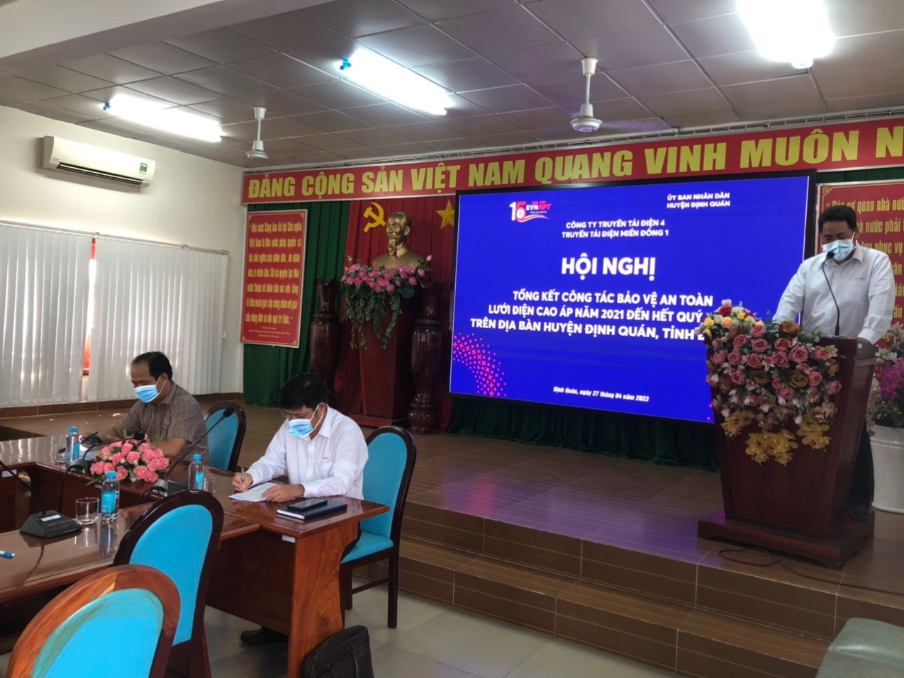 Kết luận Hội nghị ông Ngô Tấn Tài, Phó Chủ tịch huyện Định Quán đã chỉ đạo các ban ngành, các địa phương trực thuộc nâng cao trách nhiệm, phối hợp tốt với đơn vị Truyền tải trong công tác bảo vệ an toàn công trình lưới điện cao áp cụ thể: Giao UBND các xã, thị trấn và phòng Văn hóa – Thông tin cần phải am tường về công tác tuyên truyền, xác định rõ các nguy cơ có thể xảy ra cũng như xác định rõ đối tượng cần tuyên truyền để phối hợp thực hiện cho đúng, tăng cường tuyên truyền trực tiếp cho các đối tượng gần hành lang lưới điện, tập trung tuyên truyền và có biện pháp xử lý cụ thể đối với các trường hợp thả diều gần hành lang an toàn lưới điện. Giao Phòng Văn hóa – Thông tin huyện đẩy mạnh việc tuyên truyền bảo vệ an toàn công trình lưới điện cao áp trên hệ thống loa phát thanh của địa phương cũng như lồng ghép trong các buổi họp. Chủ trì Hội nghị yêu cầu đơn vị Công an các cấp tăng cường phối hợp trong công tác tuần tra, kiểm tra nhằm sớm phát hiện và xử lý kịp thời các vi phạm hành lang nếu có. Ông cũng giao nhiệm vụ cho ngành giáo dục trên địa bàn huyện phải đưa các nội dung liên quan đến công tác bảo vệ an toàn công trình lưới điện cao áp vào trong các trường học trên địa bàn để tuyên truyền sâu rộng đến toàn thể các lớp học sinh để các em hiểu và thực hiện. Đối với UBND các xã, Thị trấn, Ban Quản lý rừng phòng hộ trên địa bàn huyện, ông yêu cầu cần phối hợp với Truyền tải điện miền Đông 1 chặt chẽ hơn nữa trong công tác bảo vệ rừng, phòng chống cháy khu vực hành lang lưới điện cũng như công tác xử lý cây cao ngoài hành lang các tuyến đường dây truyền tải đi qua khu vực rừng phòng hộ.