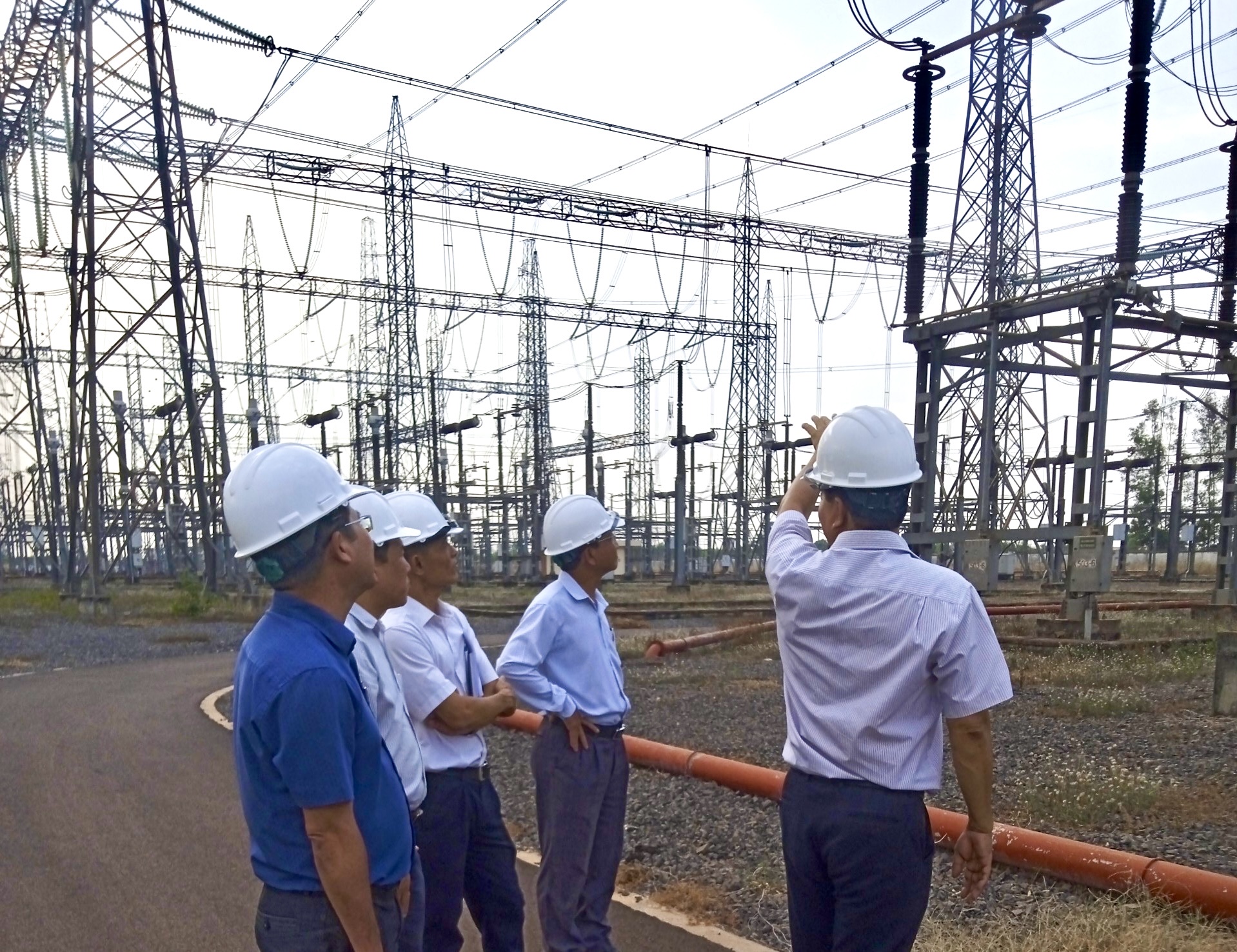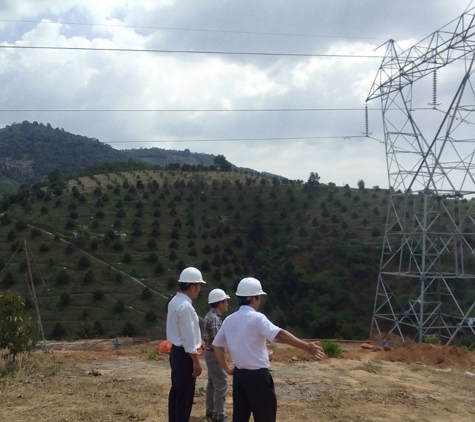 Ông Nguyễn Minh Dũng – Giám đốc TTĐMĐ1 (áo trắng bên phải) kiểm tra tuyến đường dây truyền tải trọng điểm 500kV Di Linh -Tân Định.